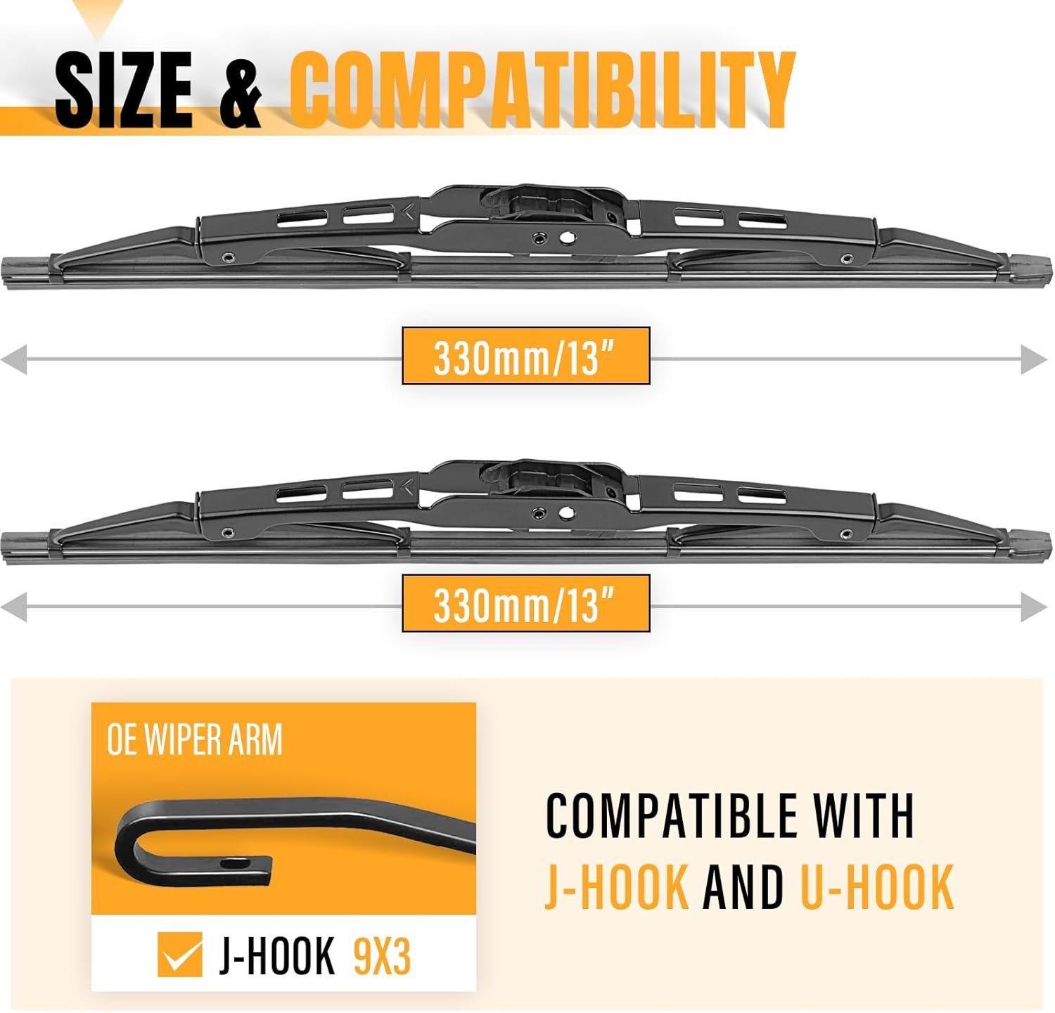 AUTOBOO 13″+13″ Wiper Blades Replacement for Jeep Wrangler TJ Front Windshield Wipers 1997 1998 1999 2000 2001 2002 2003 2004 2005 2006- Original Factory Quality (Pack of 2)