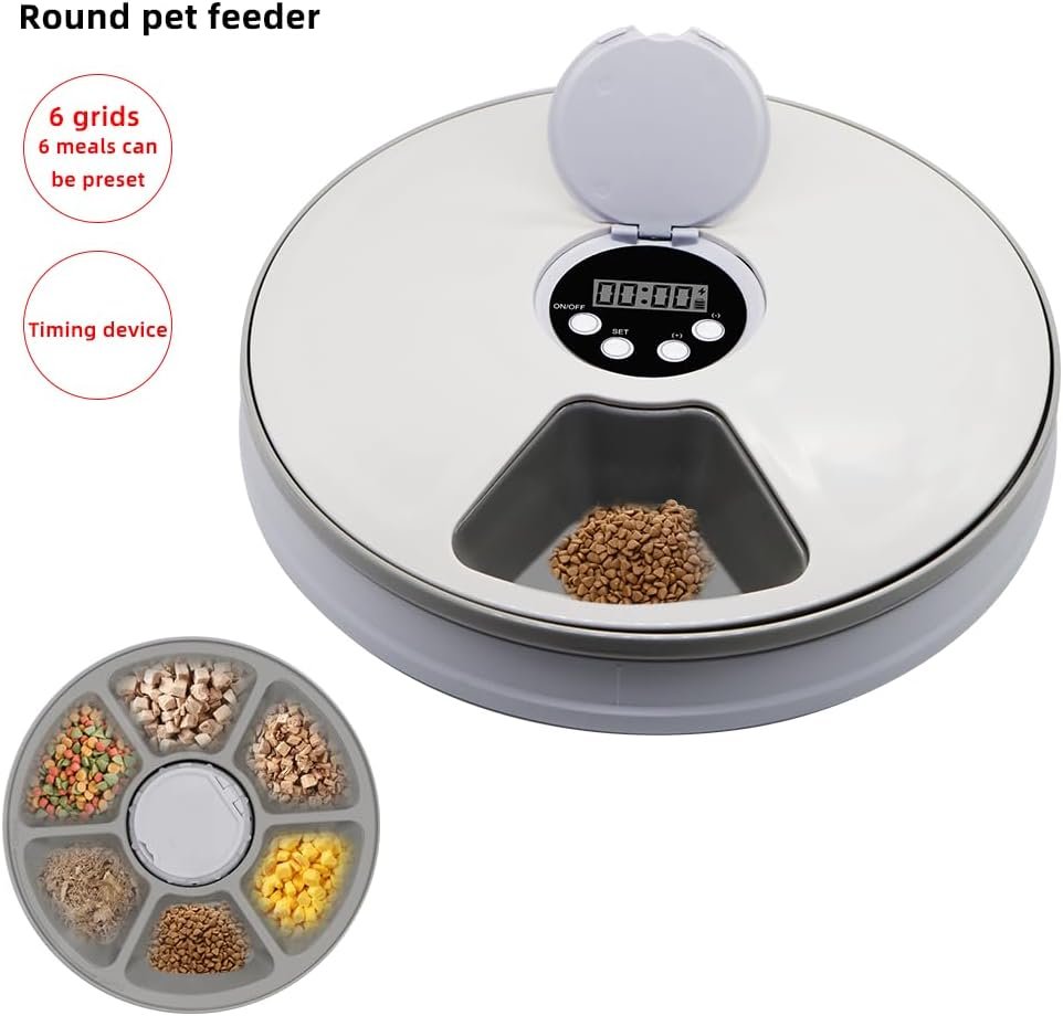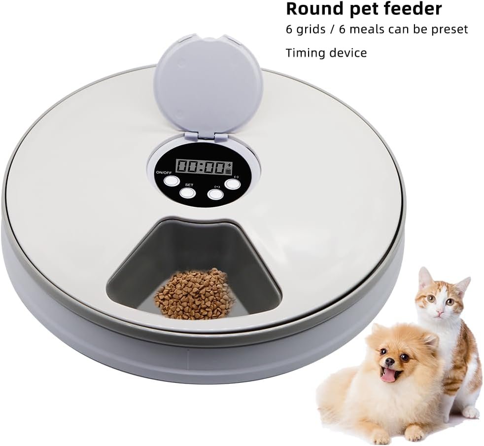 Automatic Cat Feeder for Wet/Dry Food, 6-Meal Programmable Pet Feeder, Easy to Clean Feed for Cats and Small Dogs