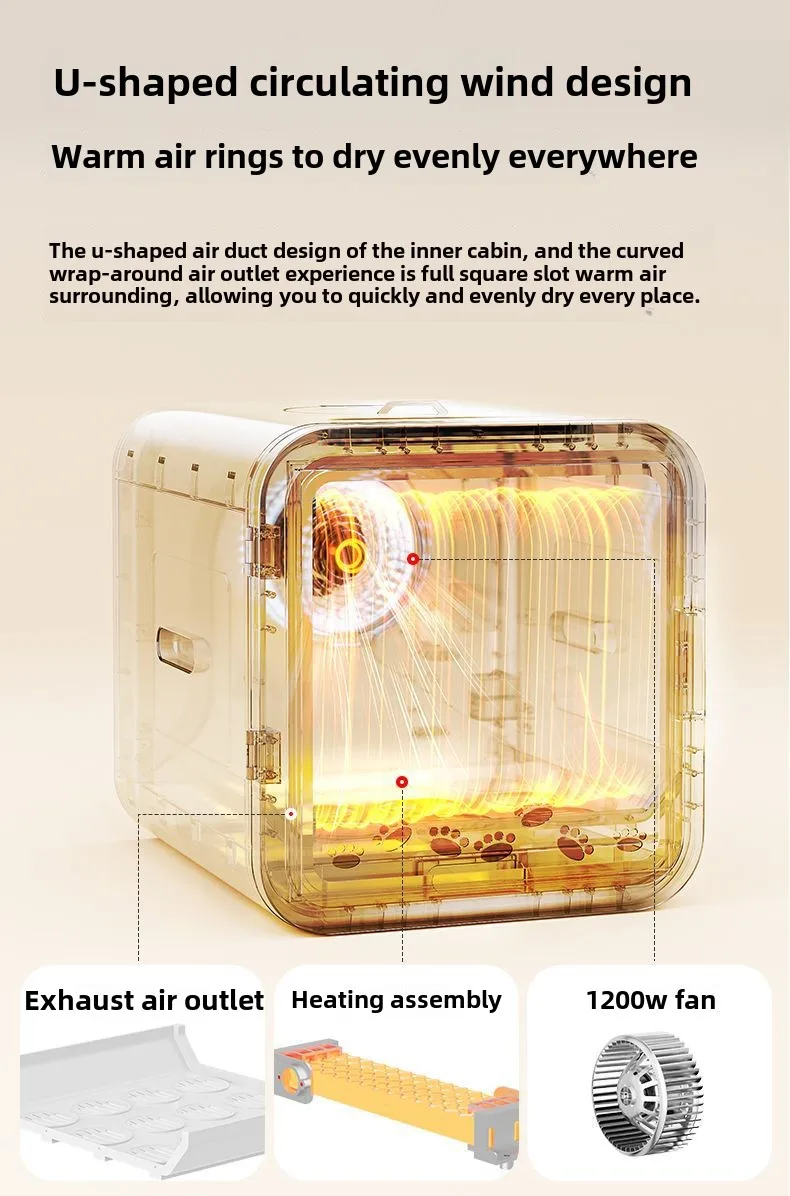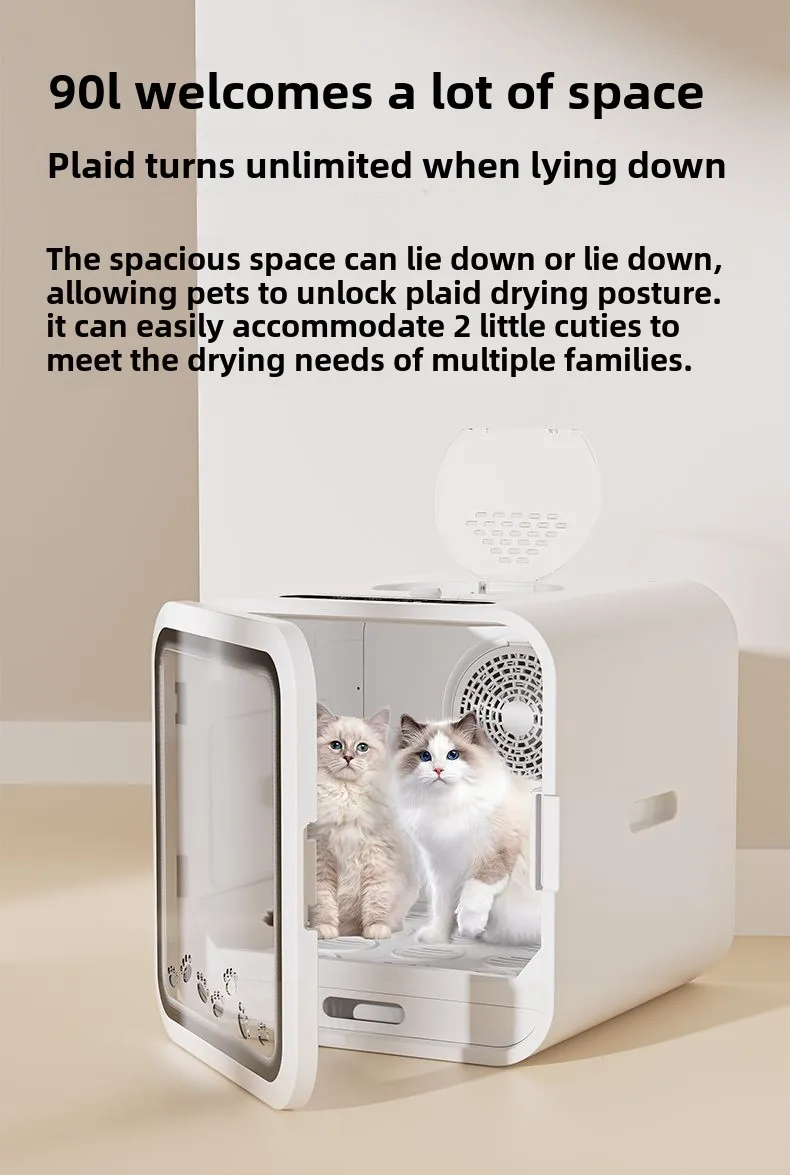 The spacious space allows pets to lie down or lie down, unlocking a comfortable and comfortable drying posture. It can easily accommodate 2 cute little ones and meet the drying needs of multi pet families at the same time.