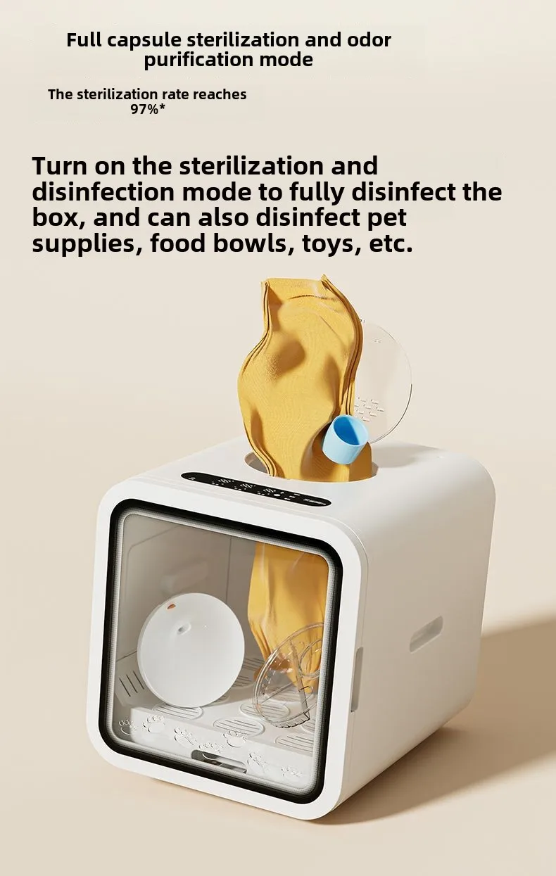 By activating the sterilization and disinfection mode, the box can be thoroughly disinfected, and pet supplies, food bowls, toys, and other items can also be disinfected.