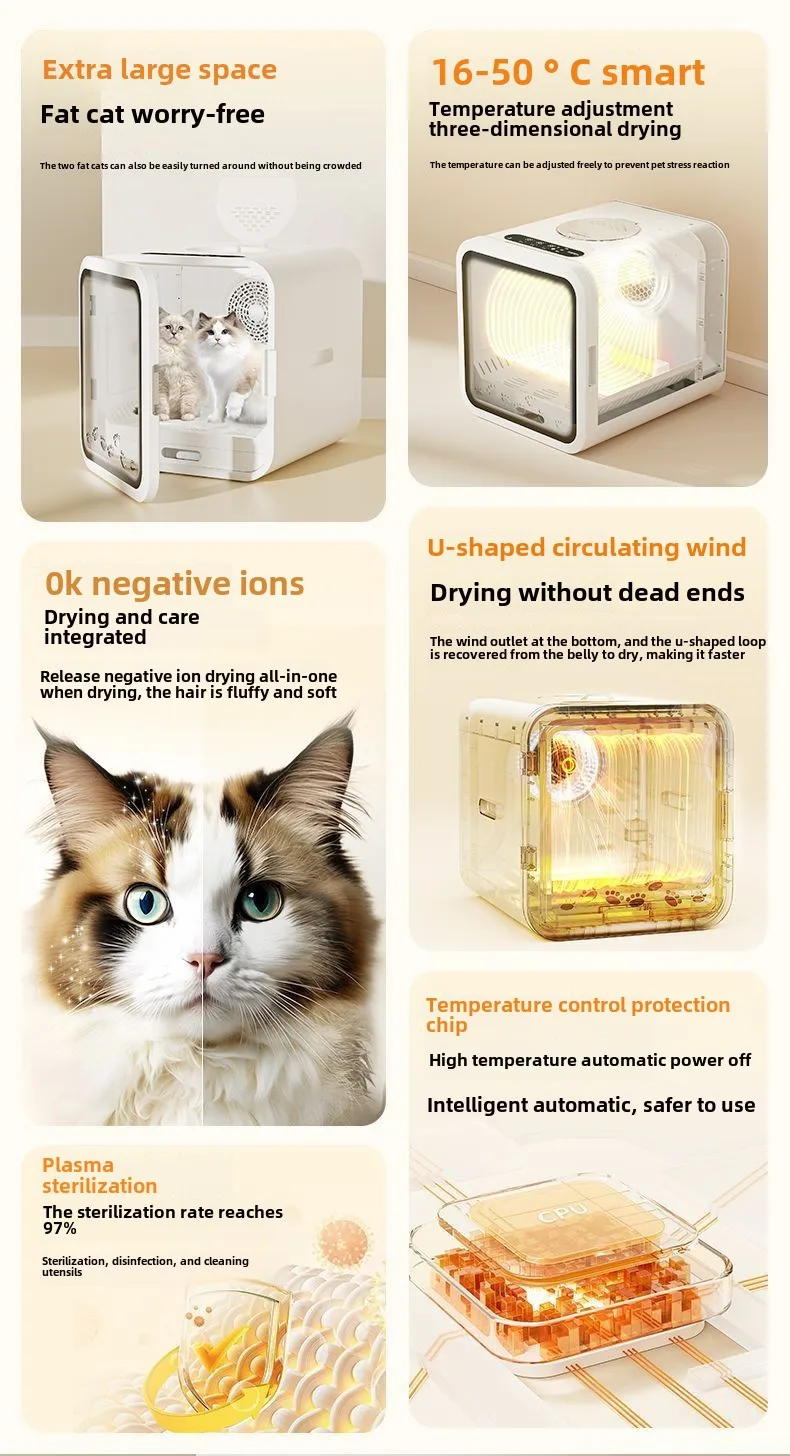 Automatic Pet Dryer Box Ultra Quiet Smart Temperature Control 360° Efficient for Cats Small Dogs Small Household Water Blower