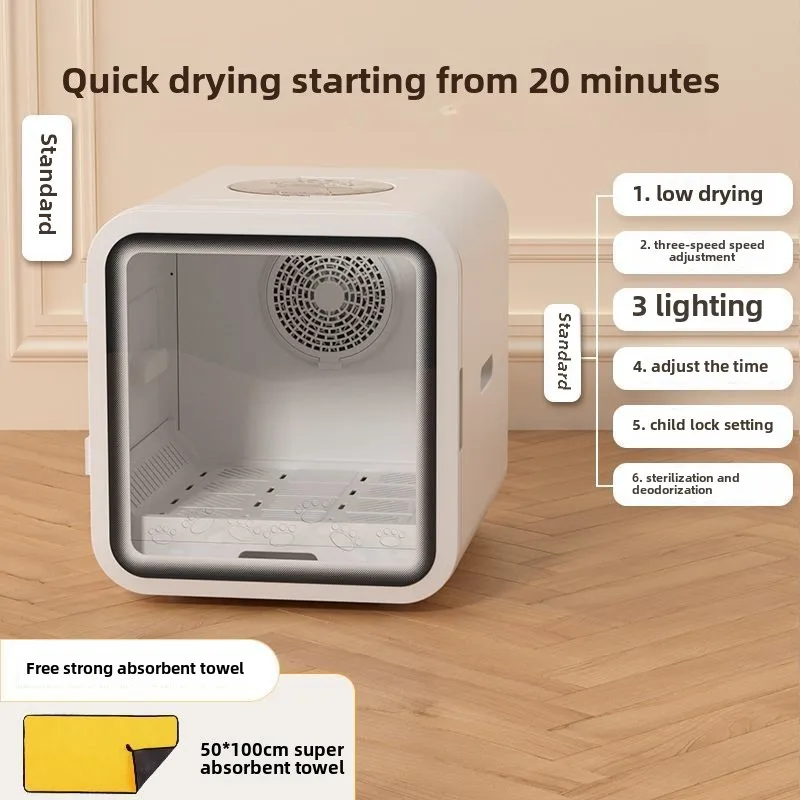The spacious space allows pets to lie down or lie down, unlocking a comfortable and comfortable drying posture. It can easily accommodate 2 cute little ones and meet the drying needs of multi pet families at the same time.