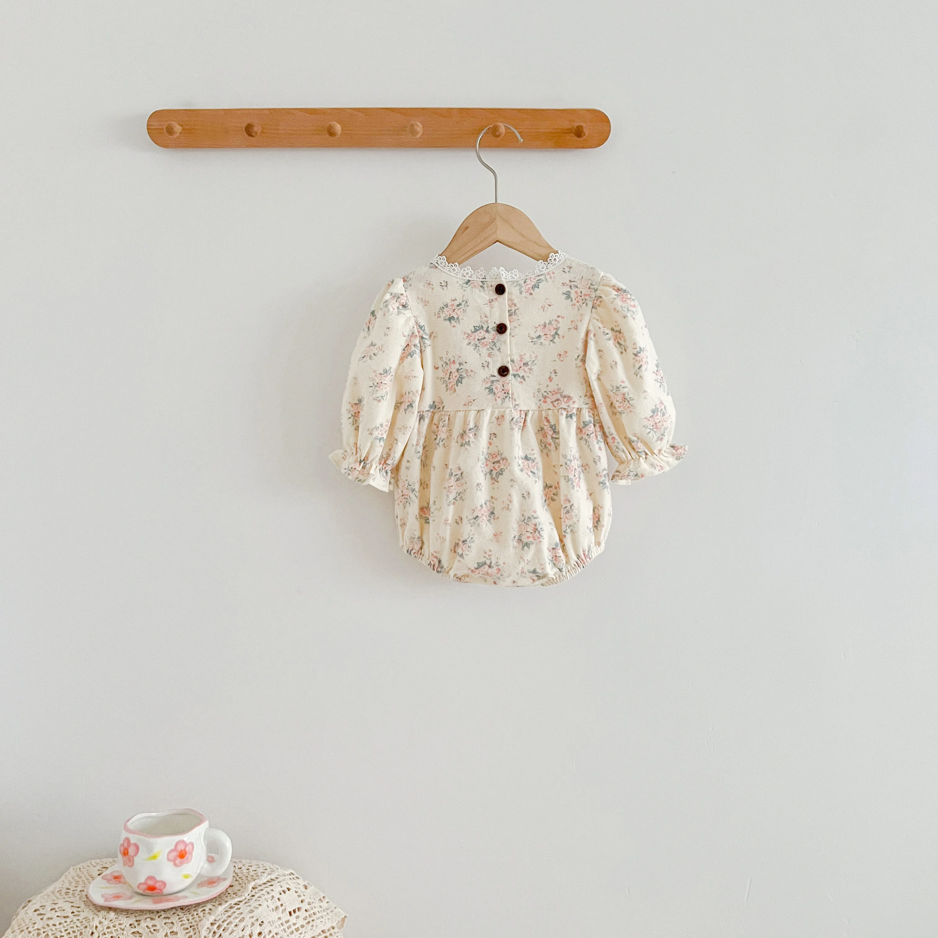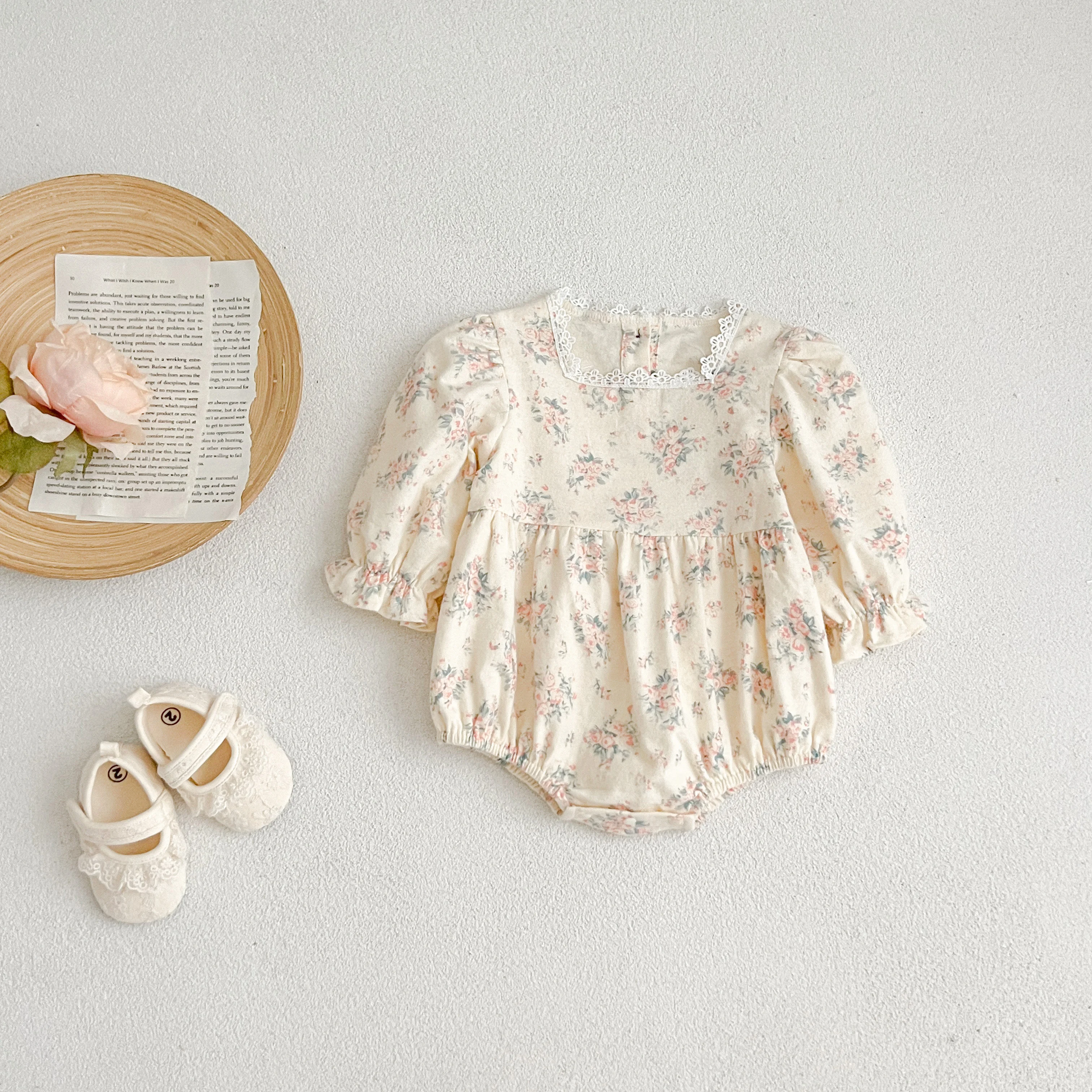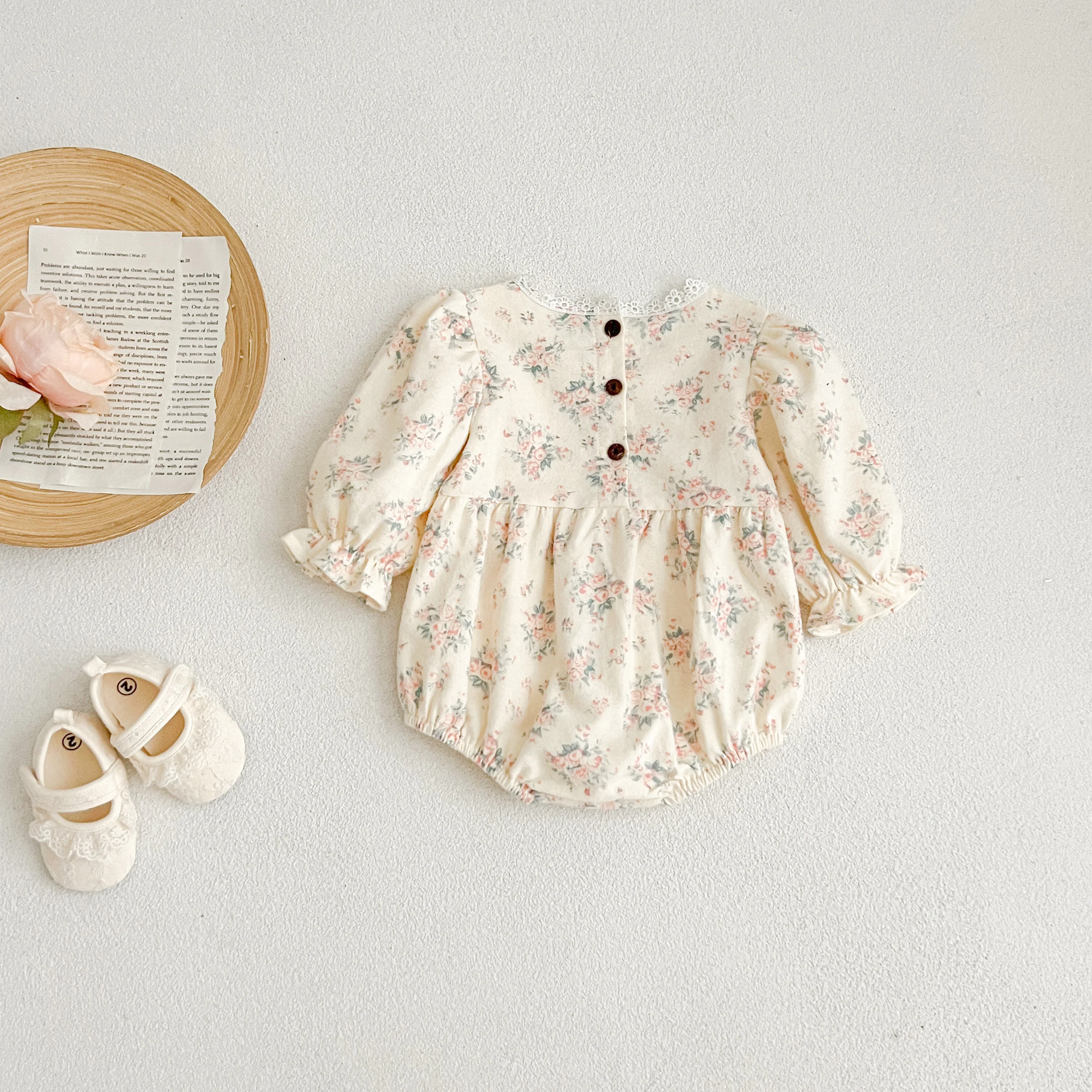Autumn Newborn Girls Romper Infant Bodysuit Lace Floral Embroidery Lapel Flower Long Sleeved Jumpsuit Baby Clothes 0-2 Years Old