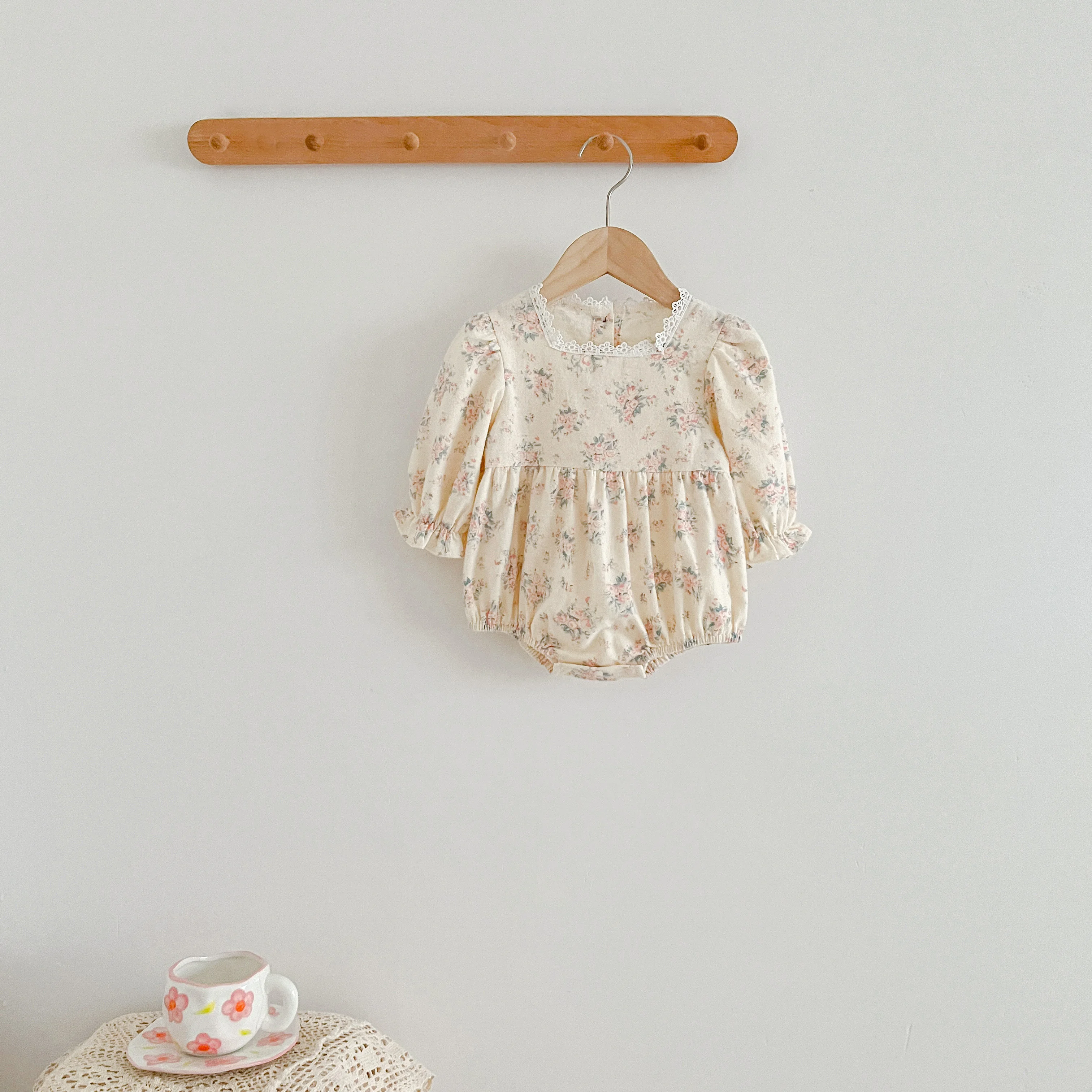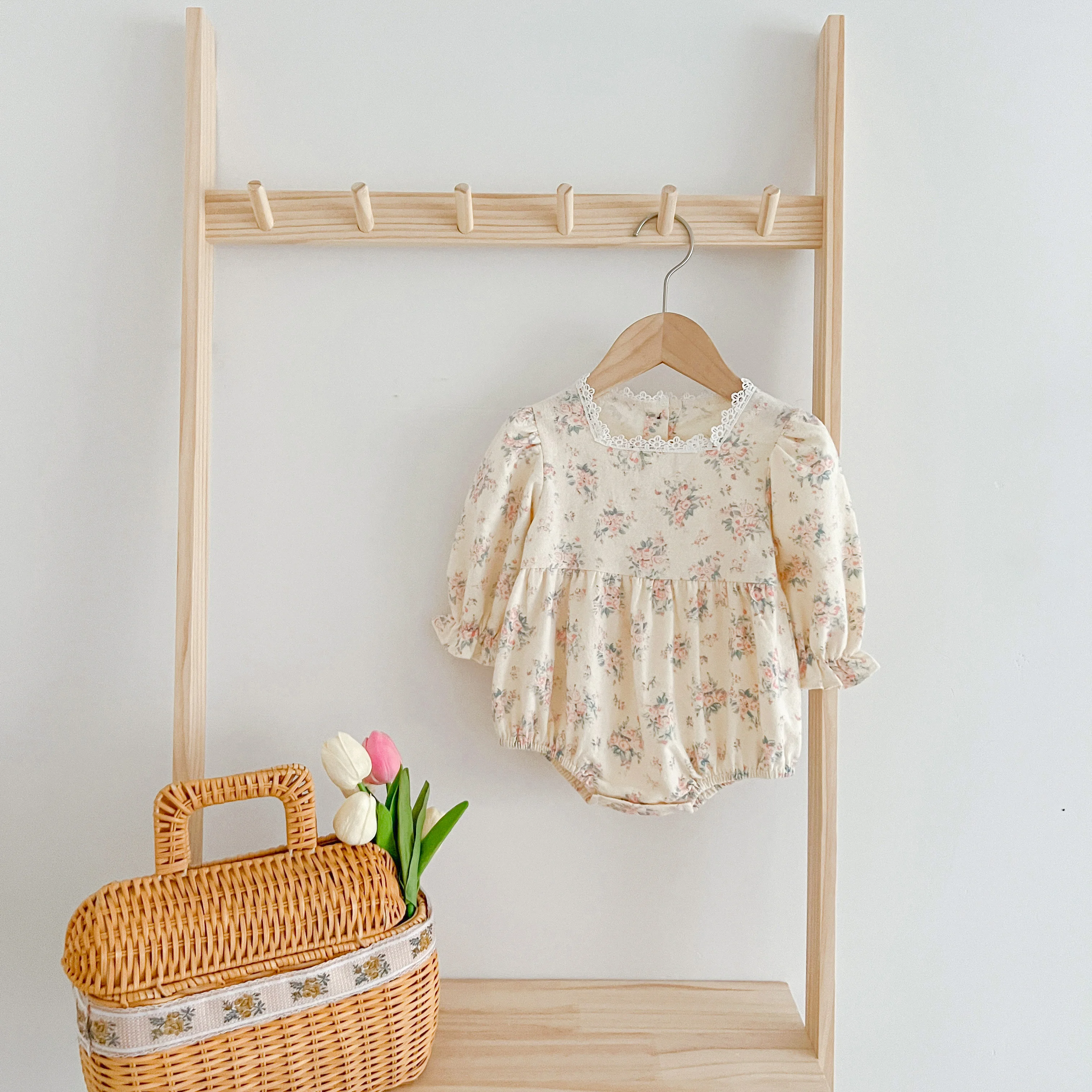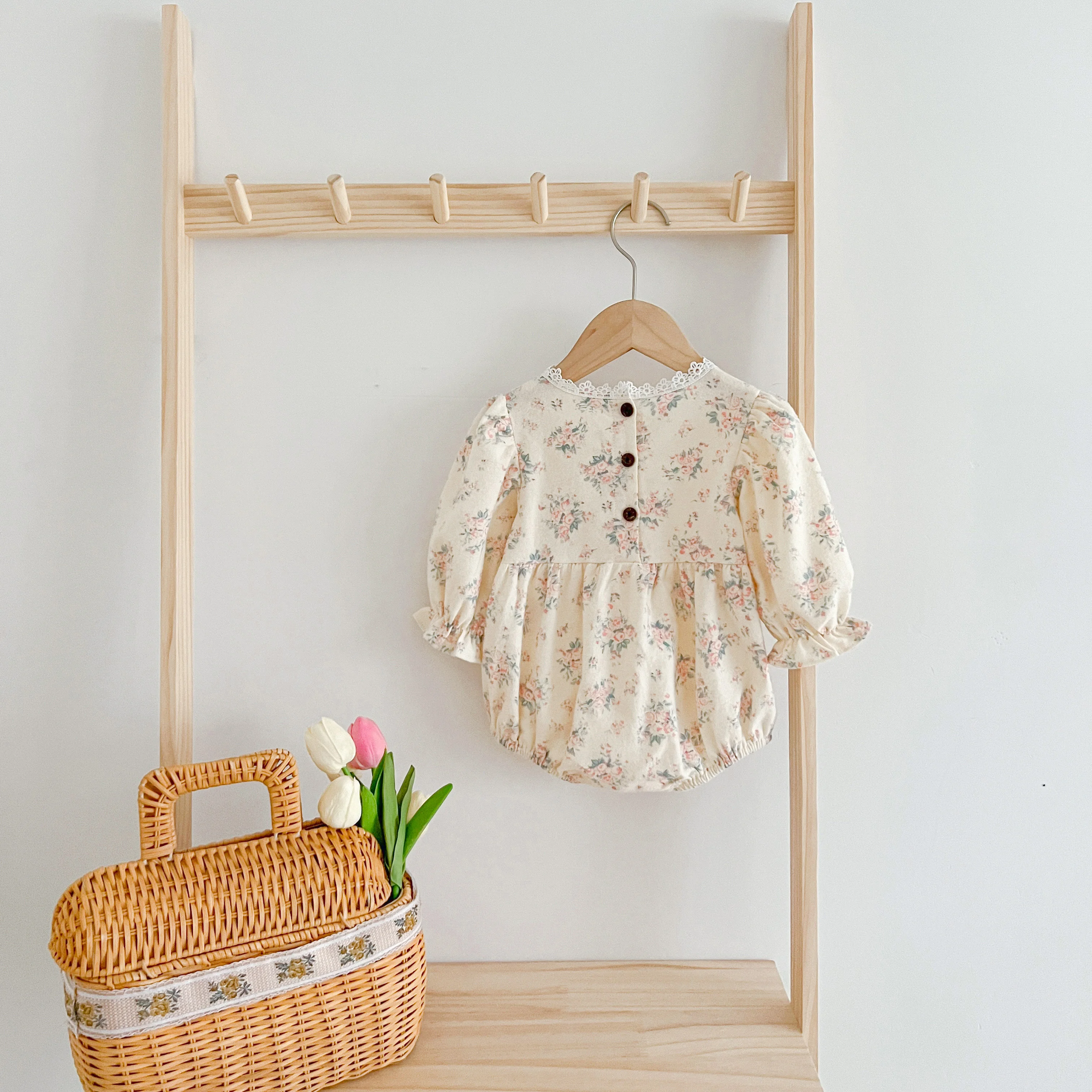 Autumn Newborn Girls Romper Infant Bodysuit Lace Floral Embroidery Lapel Flower Long Sleeved Jumpsuit Baby Clothes 0-2 Years Old
