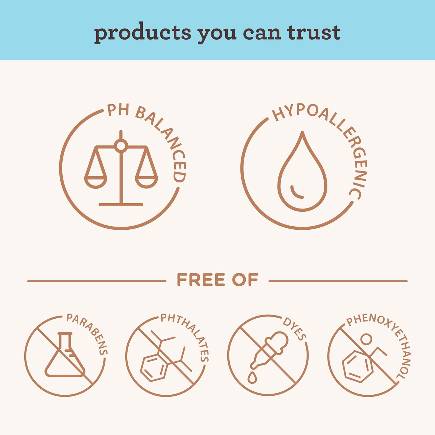 Moisturizing body wash and shampoo for babies has a hypoallergenic, tear-free formula that is gentle for baby’s sensitive skin and scalp. Its nourishing formula is pH balanced and free of parabens, phthalates, sulfates, dyes and phenoxyethanol
