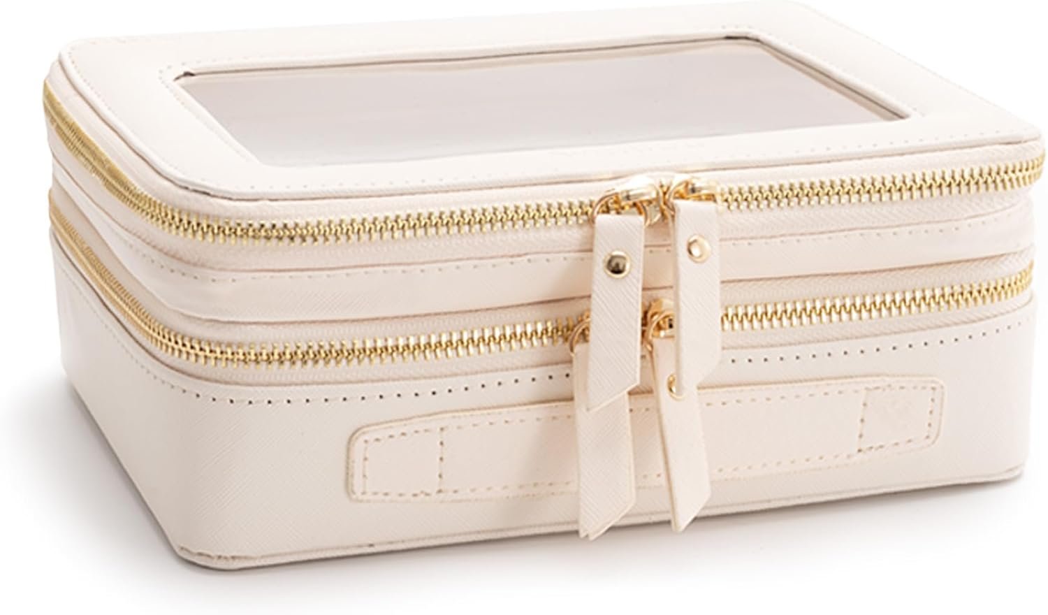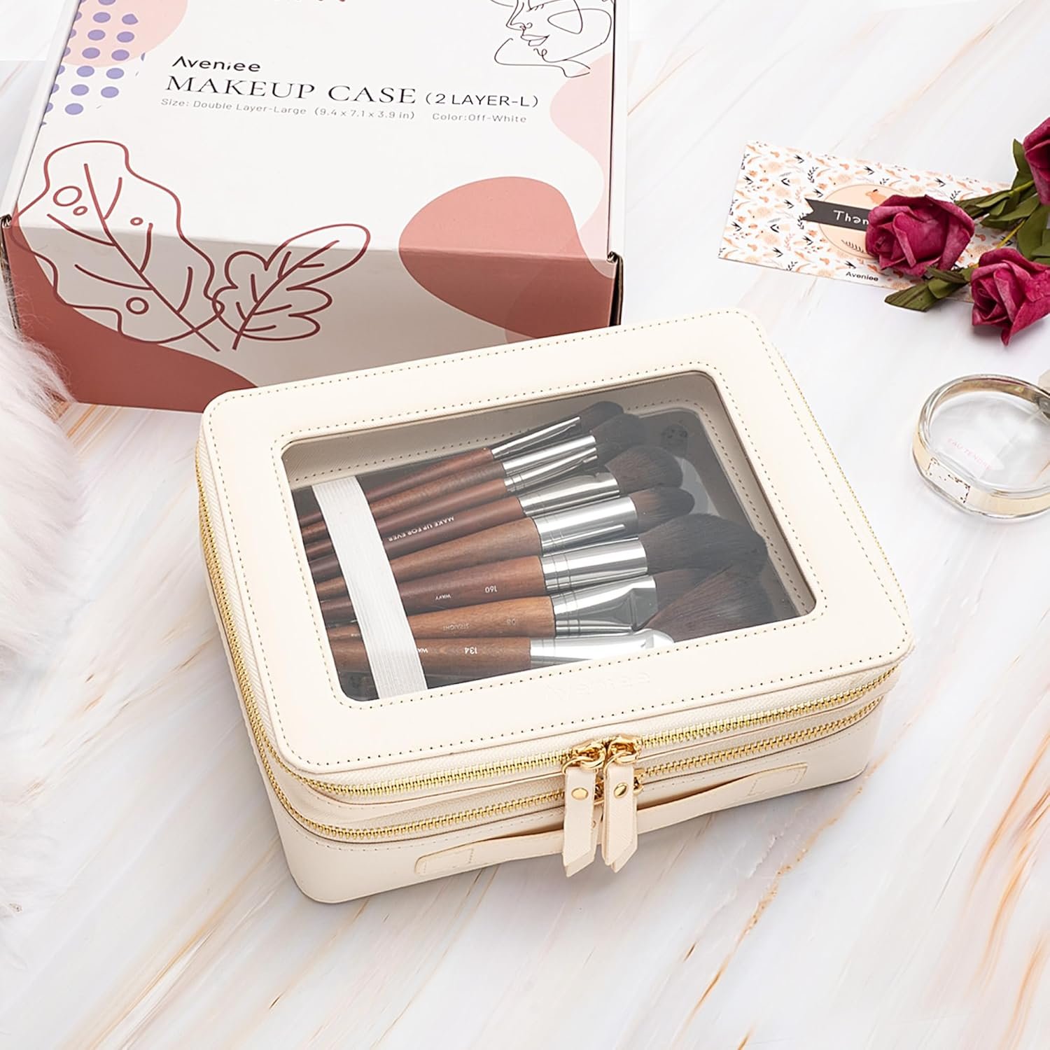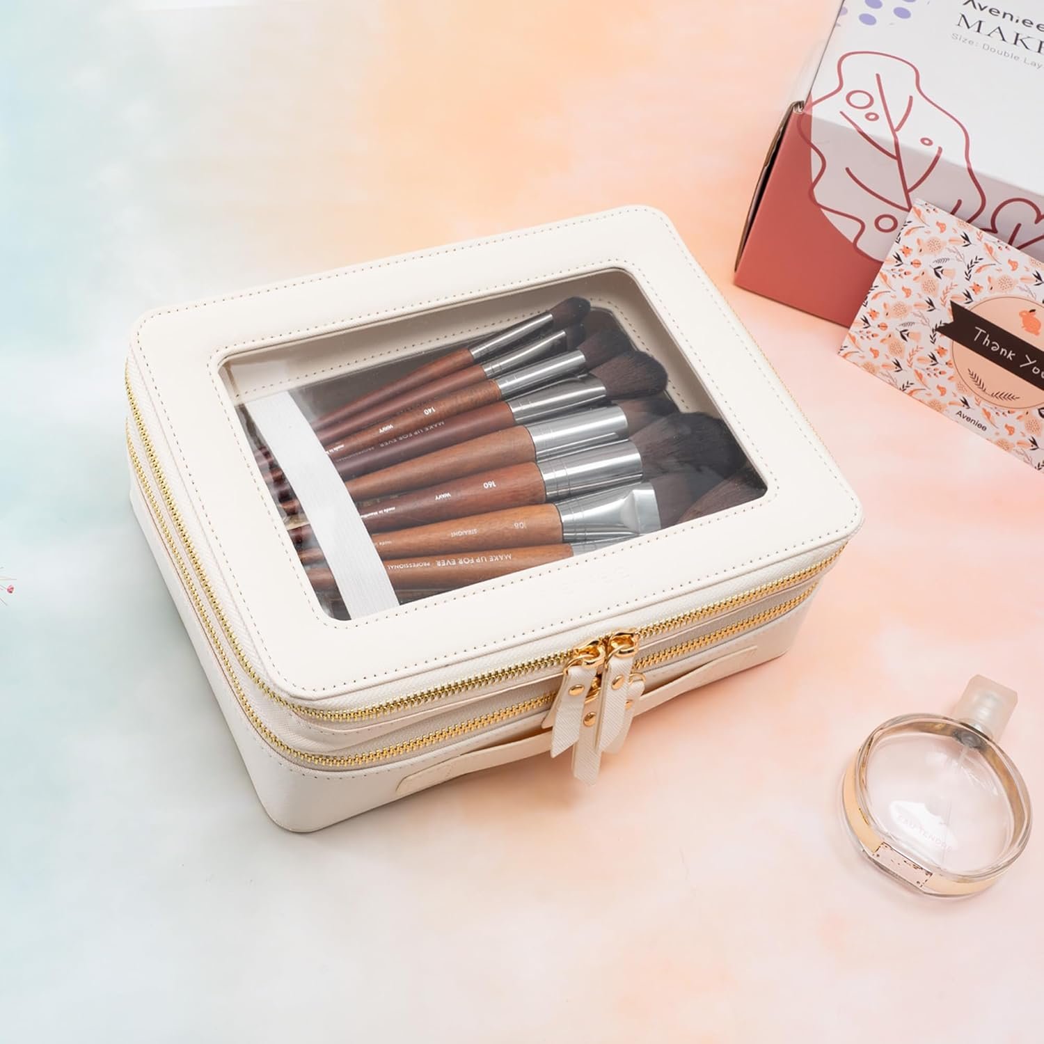 Aveniee Clear Makeup Bags, Double Layer Cosmetic Case with Separate Brush Compartment, Large Toiletry Organizer for Women, Travel Accessories Holder(2 Layers Large, White)