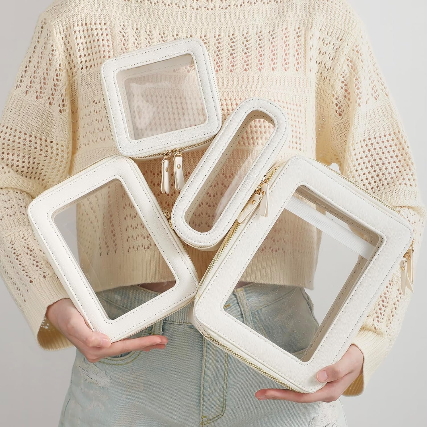 ❤【STYLISH & PREMIUM QUALIYY】Unlike other flimsy and collapsible pvc bags, our 2-layer cosmetic pouch which made of premium saffiano PU leather and thick vinyl can keep a good structure. Together with the beautiful stitches and whisper-quiet metal zippers, this make up bag is durable for long-lasting use. It’s the clear pouch you’d be happy with sitting out on display beside you.