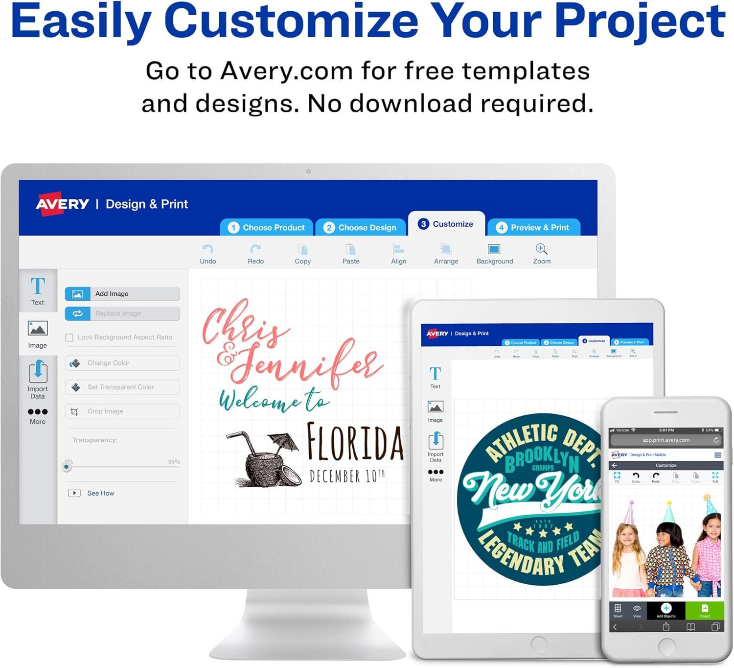 Customize your adhesive wall decals with free designs and templates on the Avery site; compatible with both laser and ink jet printers