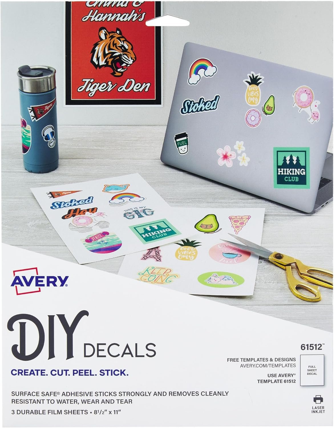 Easily create and apply custom decals with no damage to walls using our Surface Safe™ Printable Decal Stickers. The specially designed Surface Safe adhesive sticks securely to painted walls, drywall, metal and glass and removes cleanly without any residue or damage to surfaces. Great for printing personalized stickers and decals for lockers, classroom decorations, special events and more. The decals are made to last with durable polyester material that resists water, wear and tear. Compatible with popular electronic cutting machines. Easily customize your decals with free templates and designs on the Avery site.
