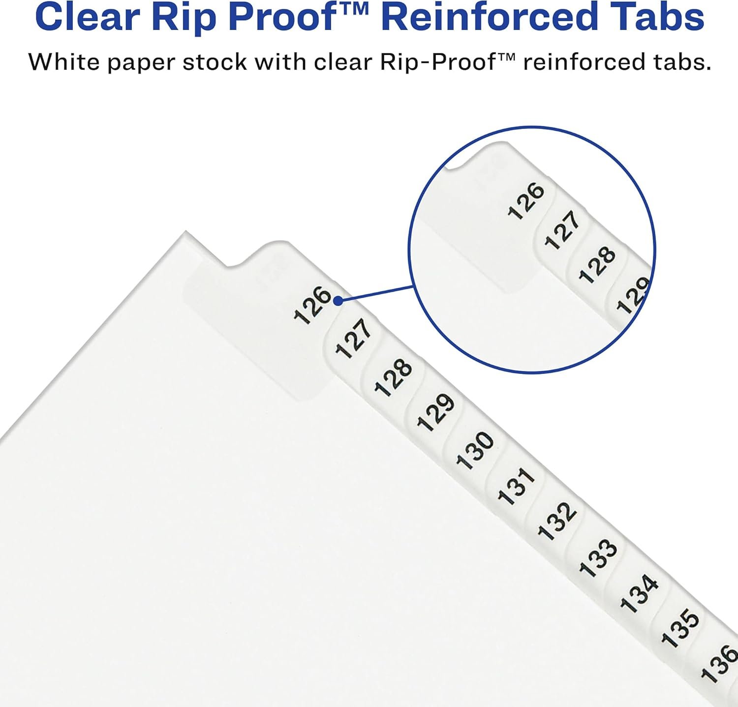 Rip Proof reinforced, dual-sided, laminated tabs make it easy to organize your information. The binding edge is unpunched, so these dividers can fit practically any binding system. Your motion for clean and orderly files has been granted. Ideal for index briefs, legal exhibits, mortgage documentation files and more!