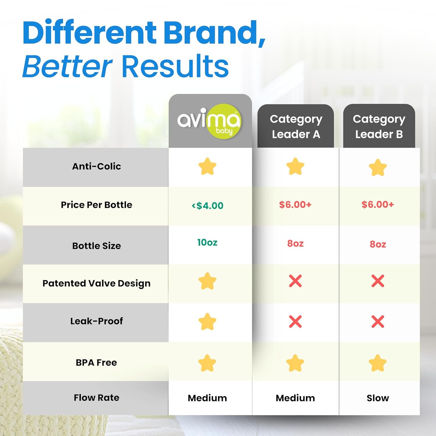Parent Designed, Safety First – Avima Baby Bottles came to life after a frustrated first-time mom & physician’s assistant needed a solution for her newborn struggling with colic, and existing bottles just didn’t cut it. We prioritize safety with BPA-free bottles for babies that meet the highest US standards for peace of mind and a happy feeding experience for you and your baby, every time.