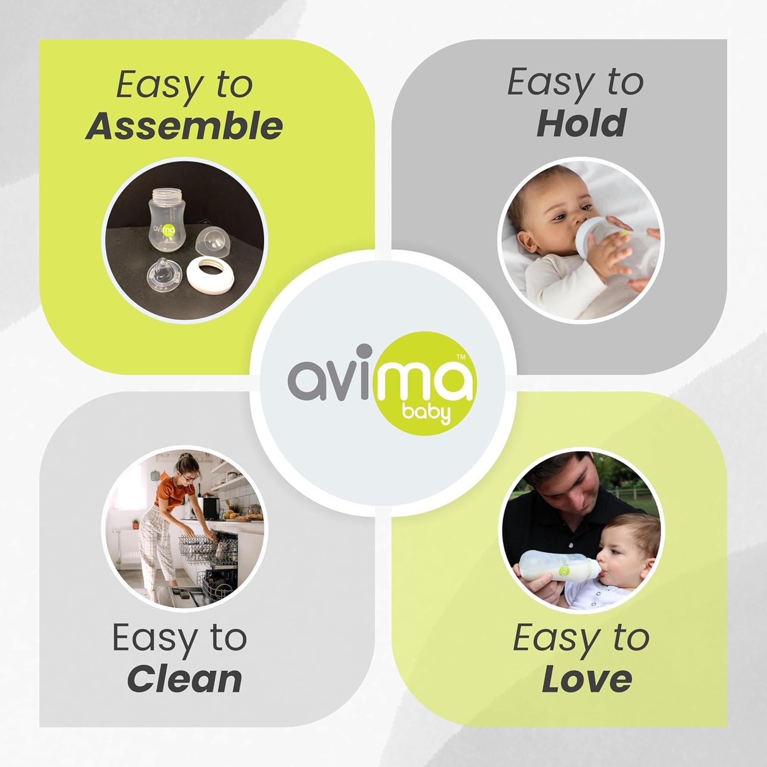 Easy to Clean & Dishwasher Safe – Our leak-proof design is easy to use & assemble with just 4 pieces, and each Avima Baby feeding bottle is dishwasher safe using the top rack, saving you precious time for cuddles & maybe even a nap!