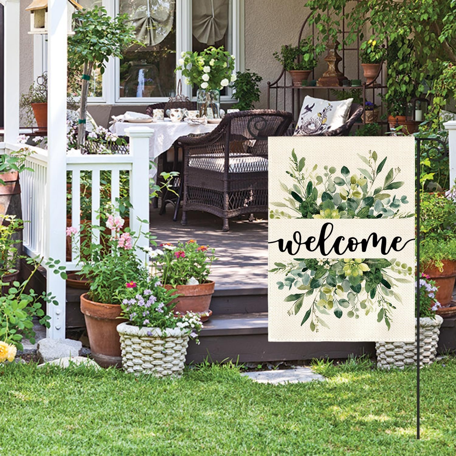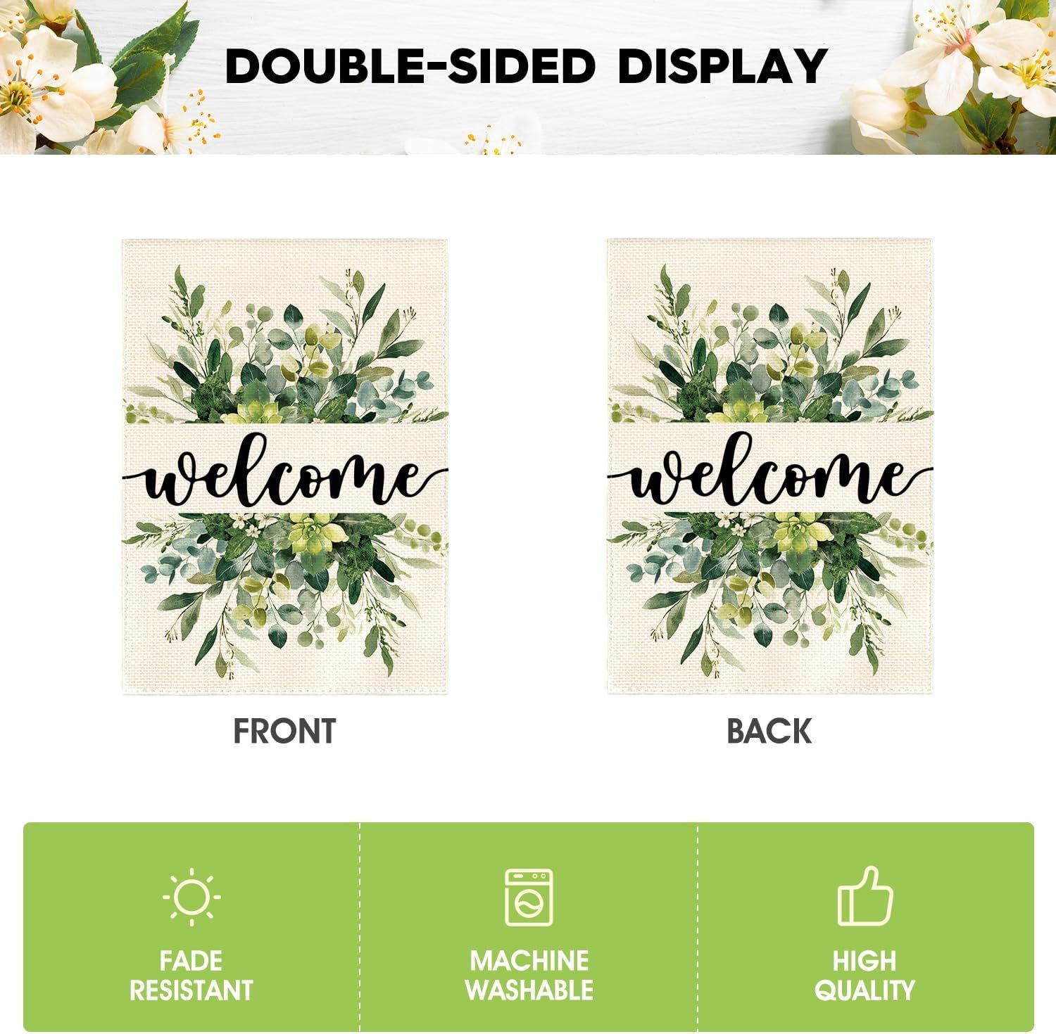 AVOIN colorlife Spring Summer Floral Welcome Garden Flag 12×18 Inch Double Sided Outside, Eucalyptus Seasonal Farmhouse Yard Outdoor Flag