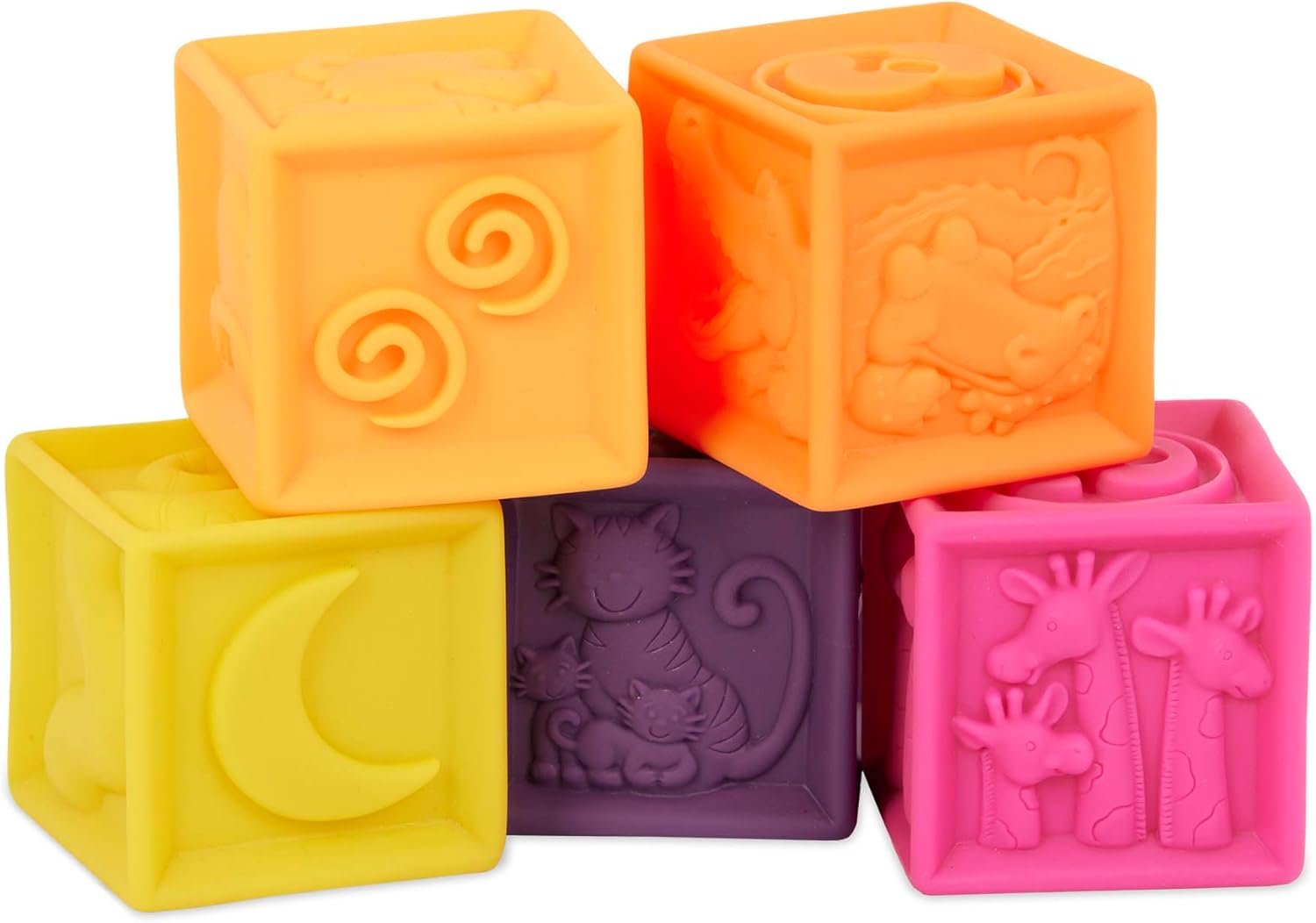 B. toys – Baby Blocks – Stacking & Building Toys for Babies – 10 Soft & Educational Blocks – Numbers, Shapes, Colors, Animals – One Two Squeeze – 6+ Months