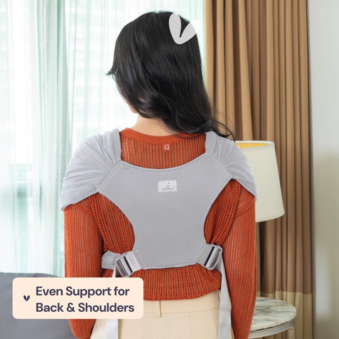 BabbleRoo Baby Wraps Carrier – Baby Essentials Baby Sling Carrier, Secure & Comfortable, Breathable, Easy-to-use, Adjustable XS to XL, Promoting Parent-Child Bonding, Gray