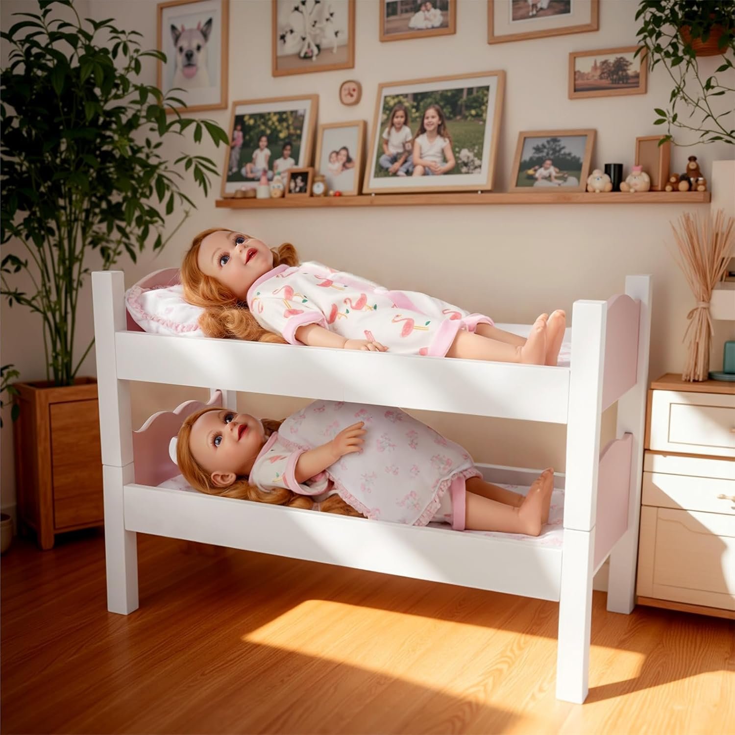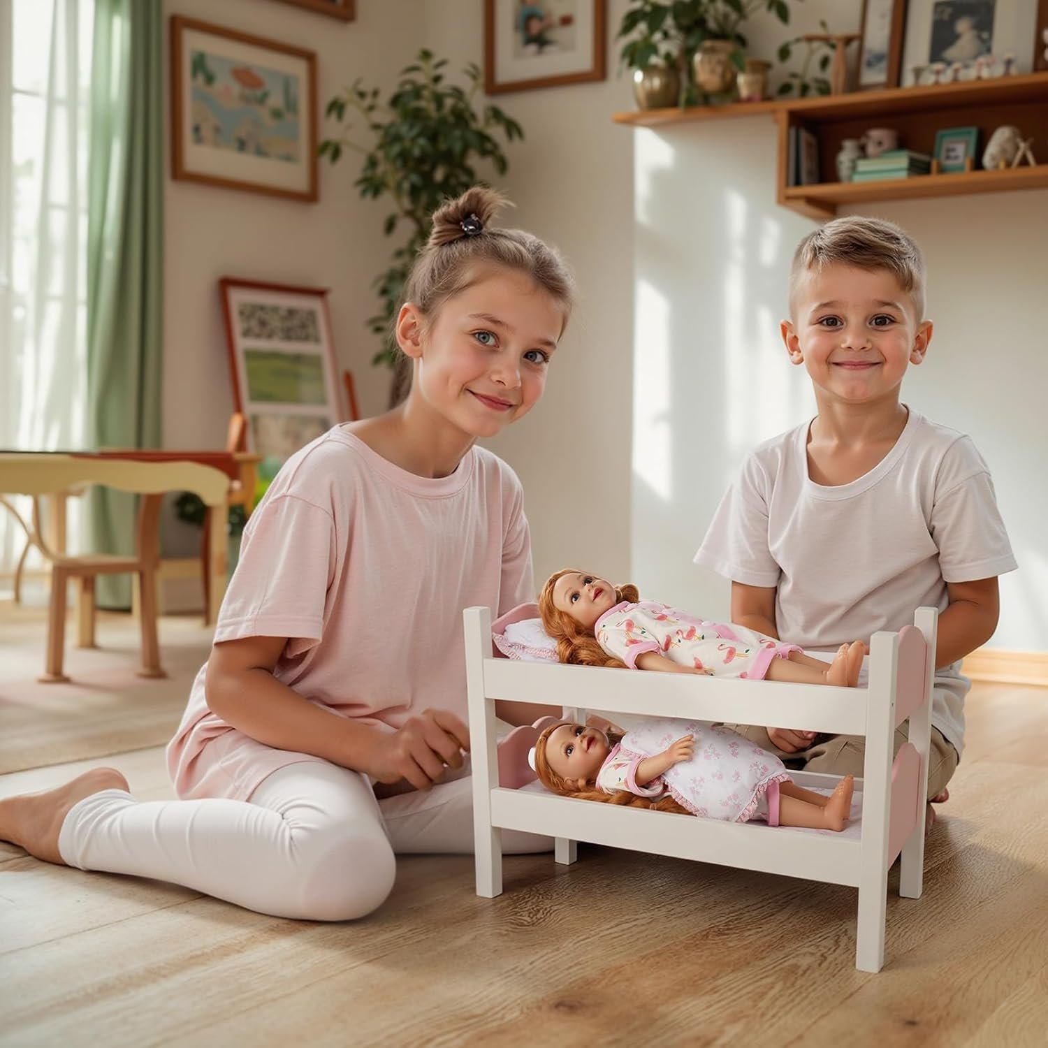 [ Double Bunk Design for More Fun ]:The two-tier bunk bed lets your child tuck in two dolls at once. Encourages sharing and creativity in playtime.