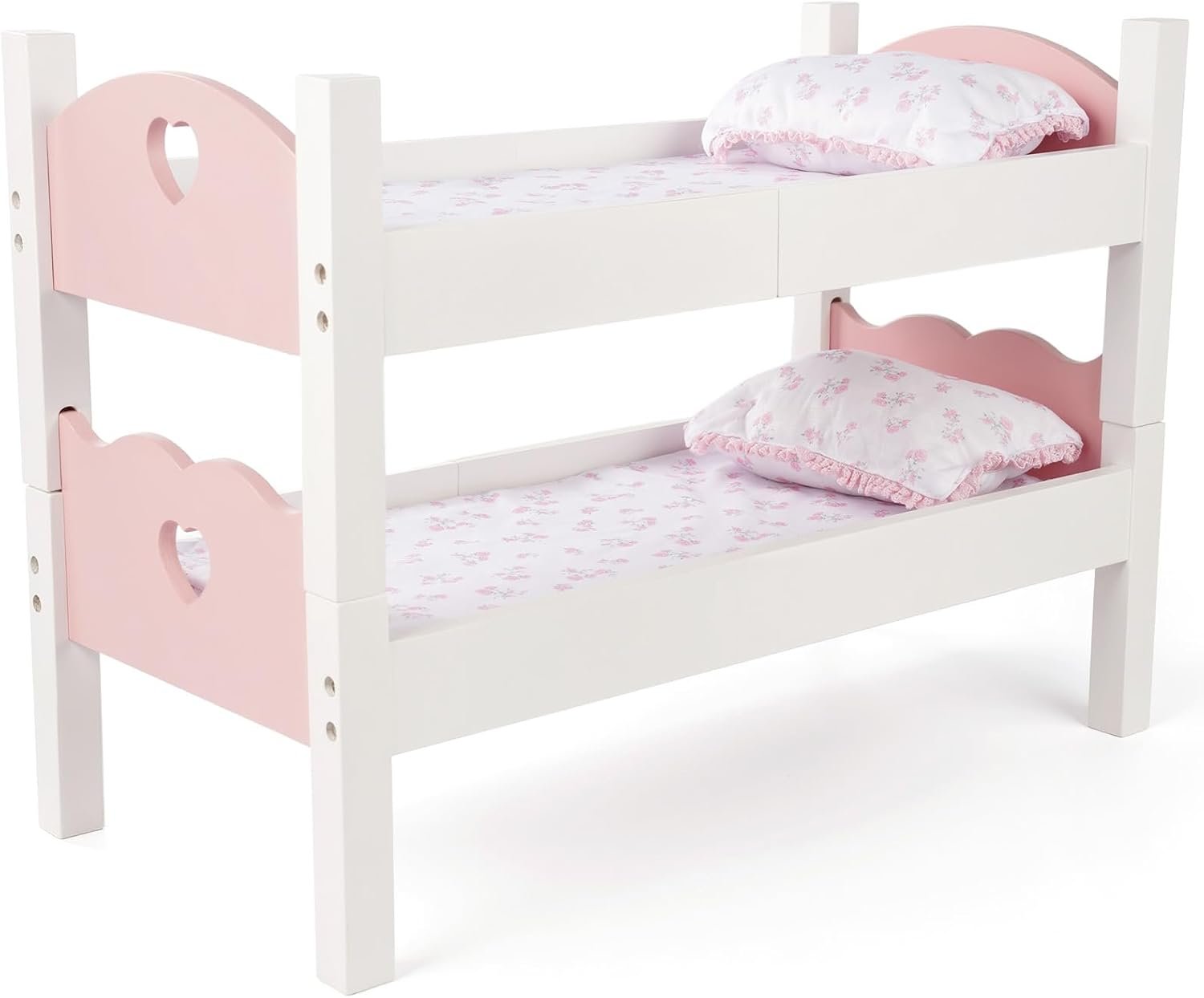 BABESIDE Wooden Doll Bunk Bed for 12-18 Inch Dolls – Sturdy Wood Doll Furniture with Removable Bedding, Fits Reborn and Newborn Girl Dolls