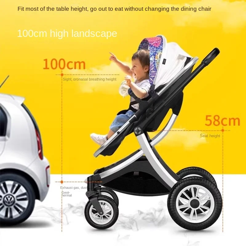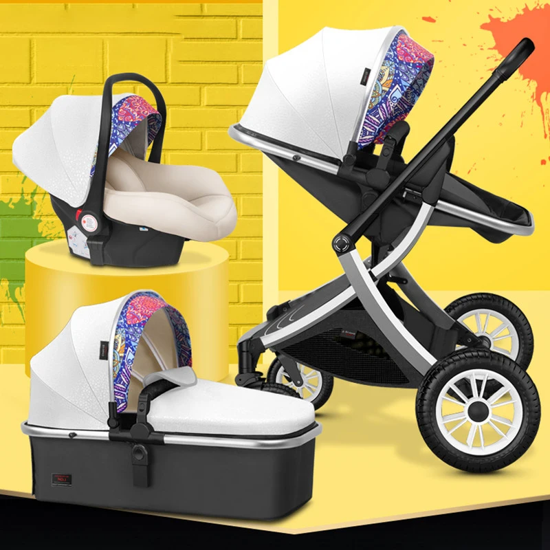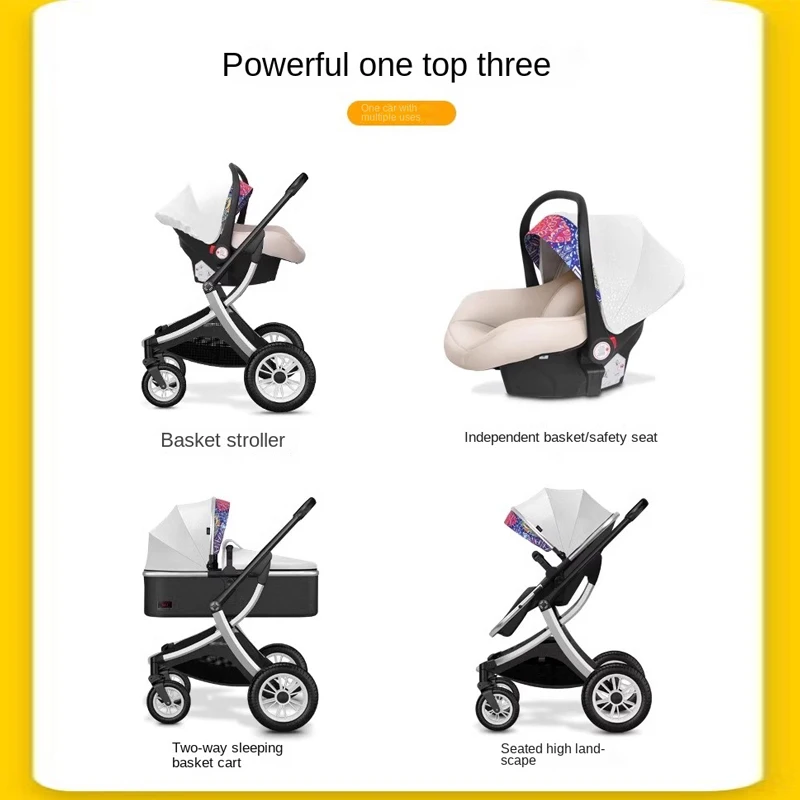 Baby 3 in 1 stroller High Landscape Baby Carriage with car seat Two-way Shock-absorbing Lightweight Folding Newborn Stroller