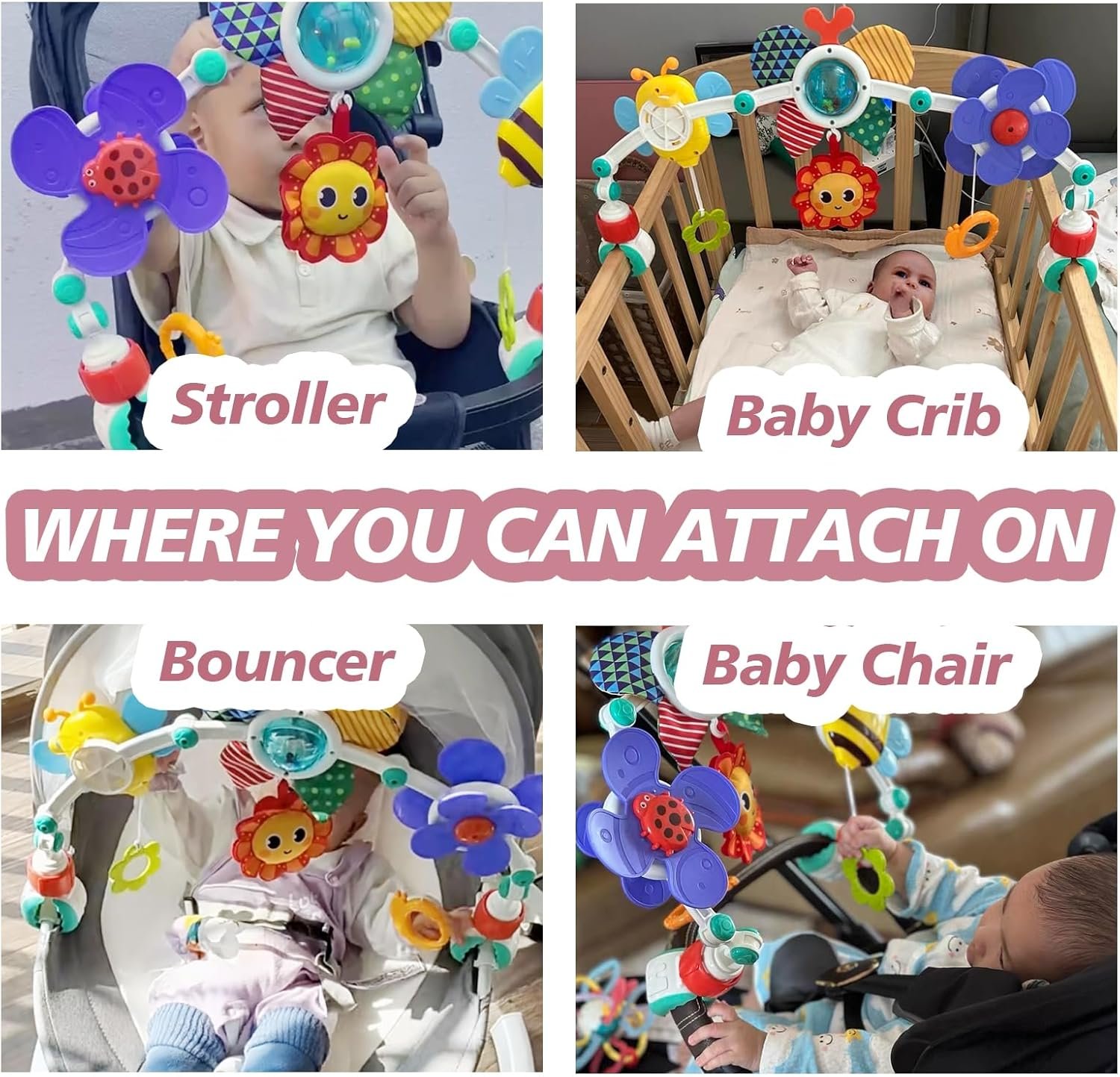 Baby Activity Arch Toy Bar for Stroller, Bassinets and Car Seat, Adjustable Crib Toys Hanging Attachment, Sensory Development Toys with Rattles