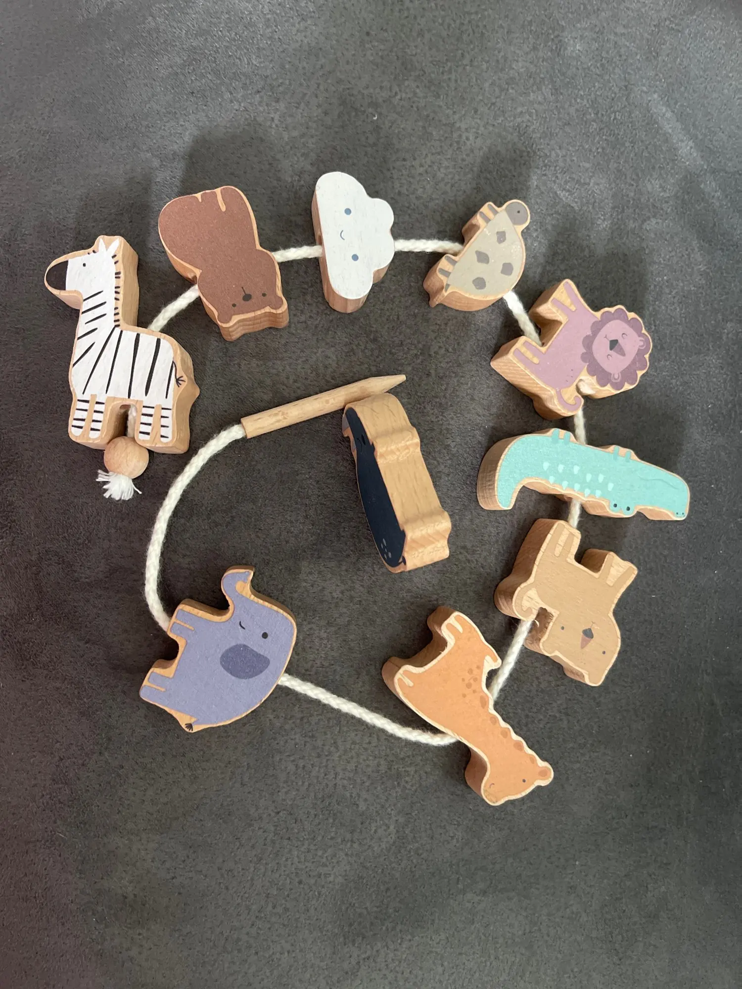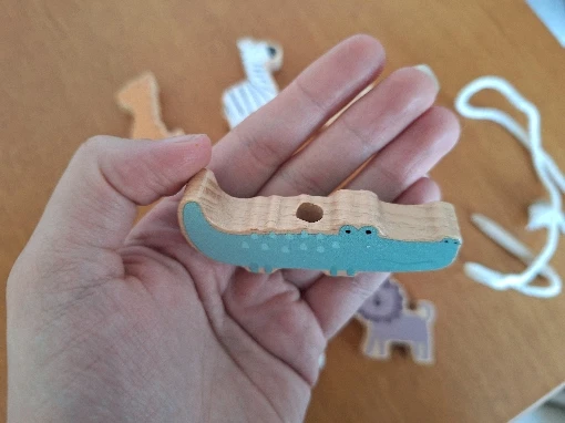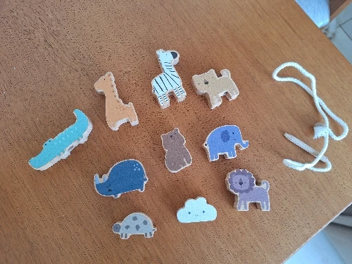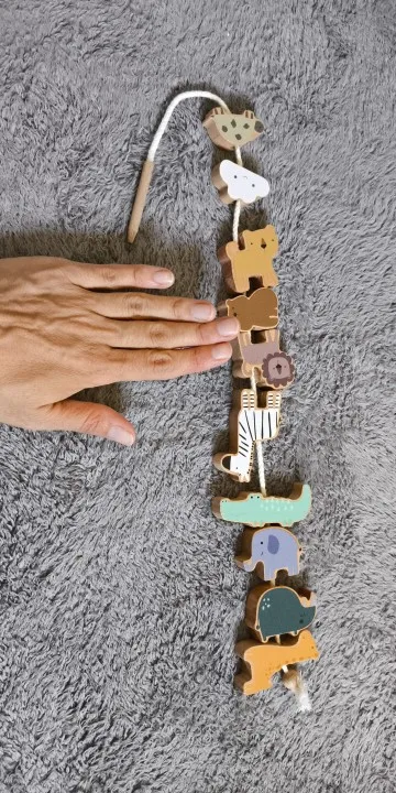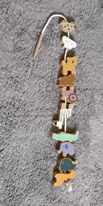 Product Description: This is an animal rope toy. In the process of threading, children will not only develop fine motor skills, hand-eye coordination and patience, but also learn bead shapes to understand animals.