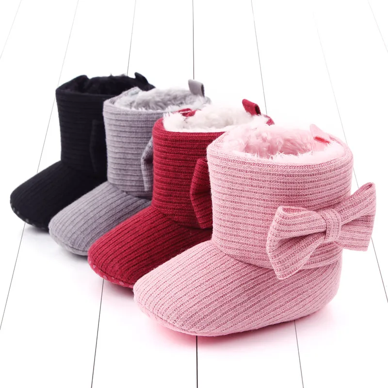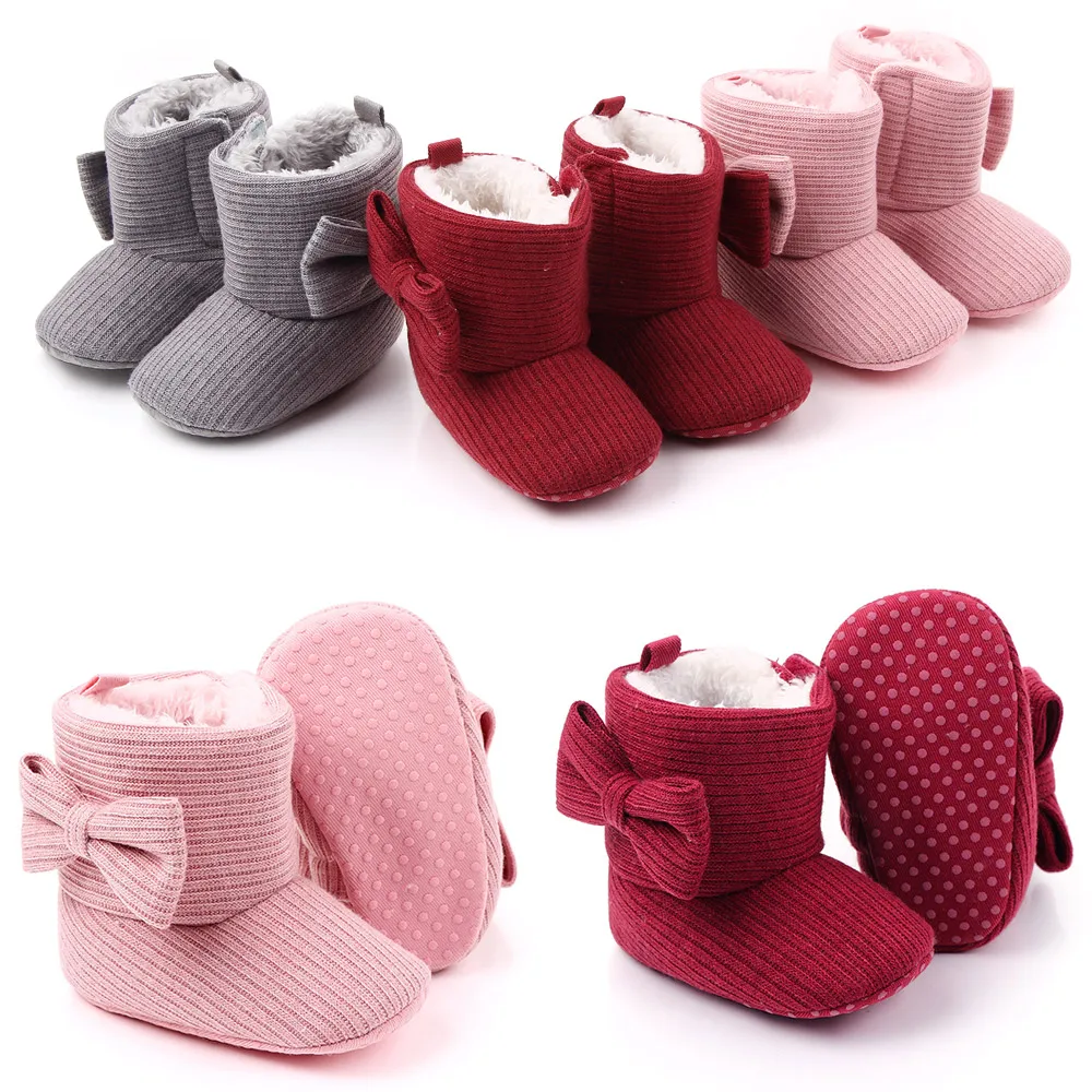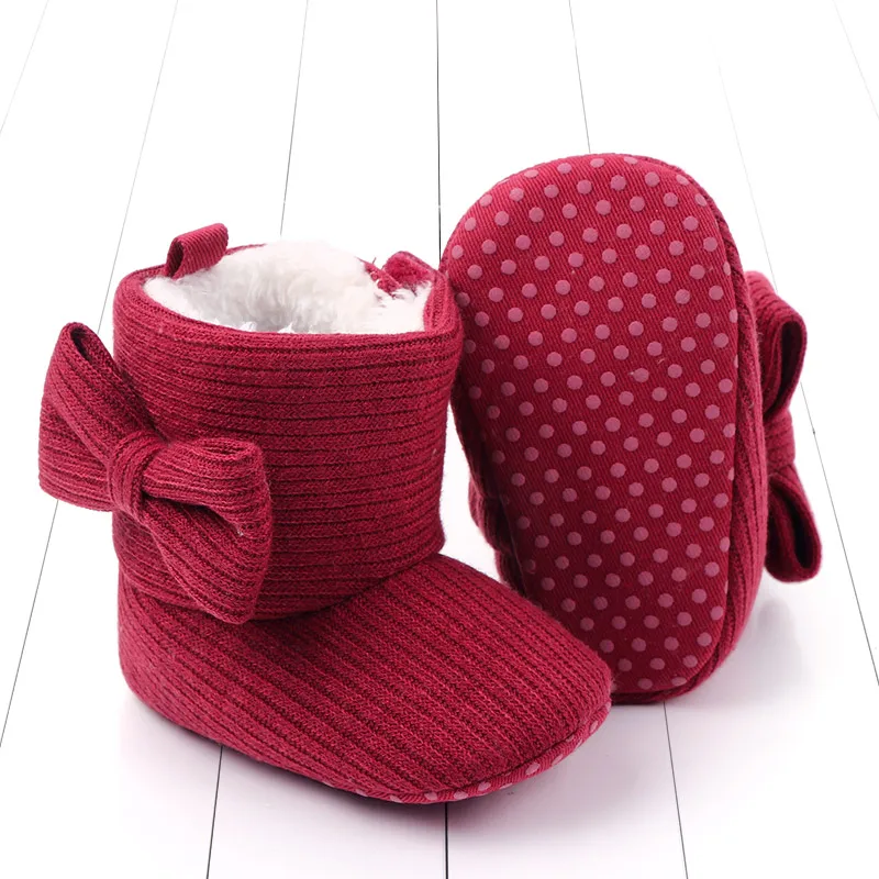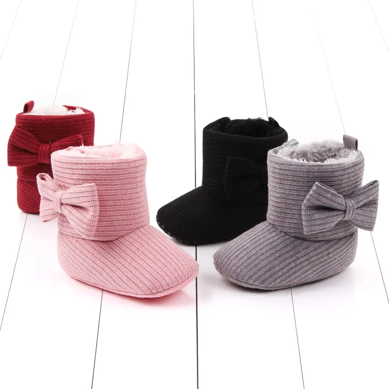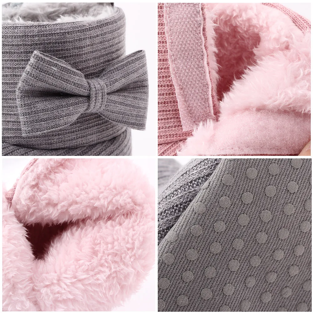 Baby Ankle-covered Boots Cute Bowknot Warm Lining Winter Infant First Walking Shoes for Baby Girls Soft Cotton Sole Baby Likes