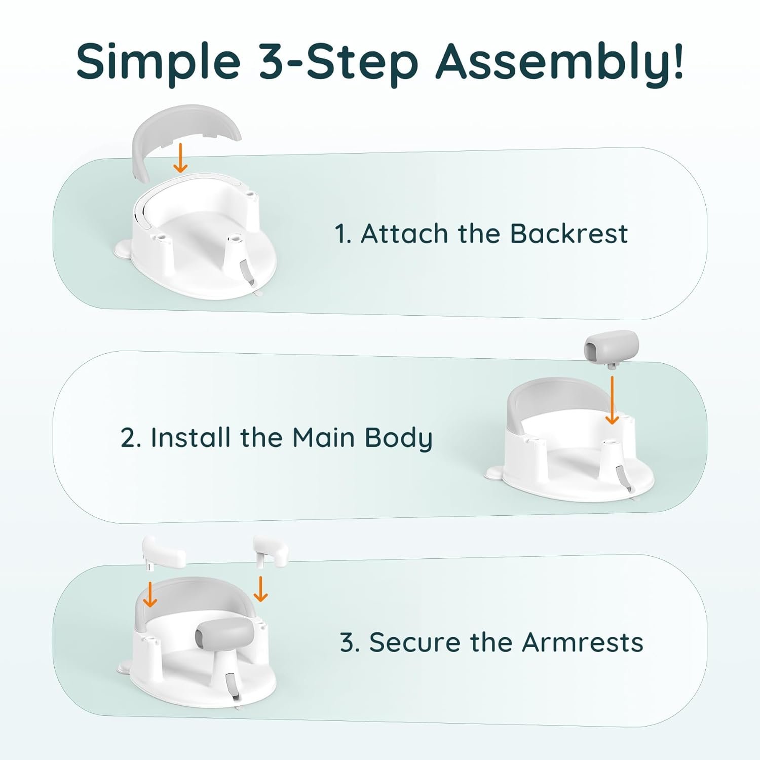 Easy Suction Release with Built-in Pull Tab: Unlike traditional bath seats that are difficult to detach, this seat features a convenient pull-handle for easy suction release. After bath time, simply lift the tab to remove the seat without tugging or damaging your tub. Quick, clean, and stress-free.