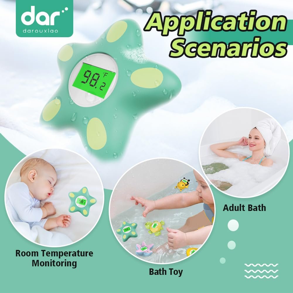 Baby Bath Thermometer, Infant Digital Water Thermometer Safety with 3 Color Backlit and Temperature Warning, Floating Toy for Infant, Toddler, Bathtub, Swimming Pool (Green)