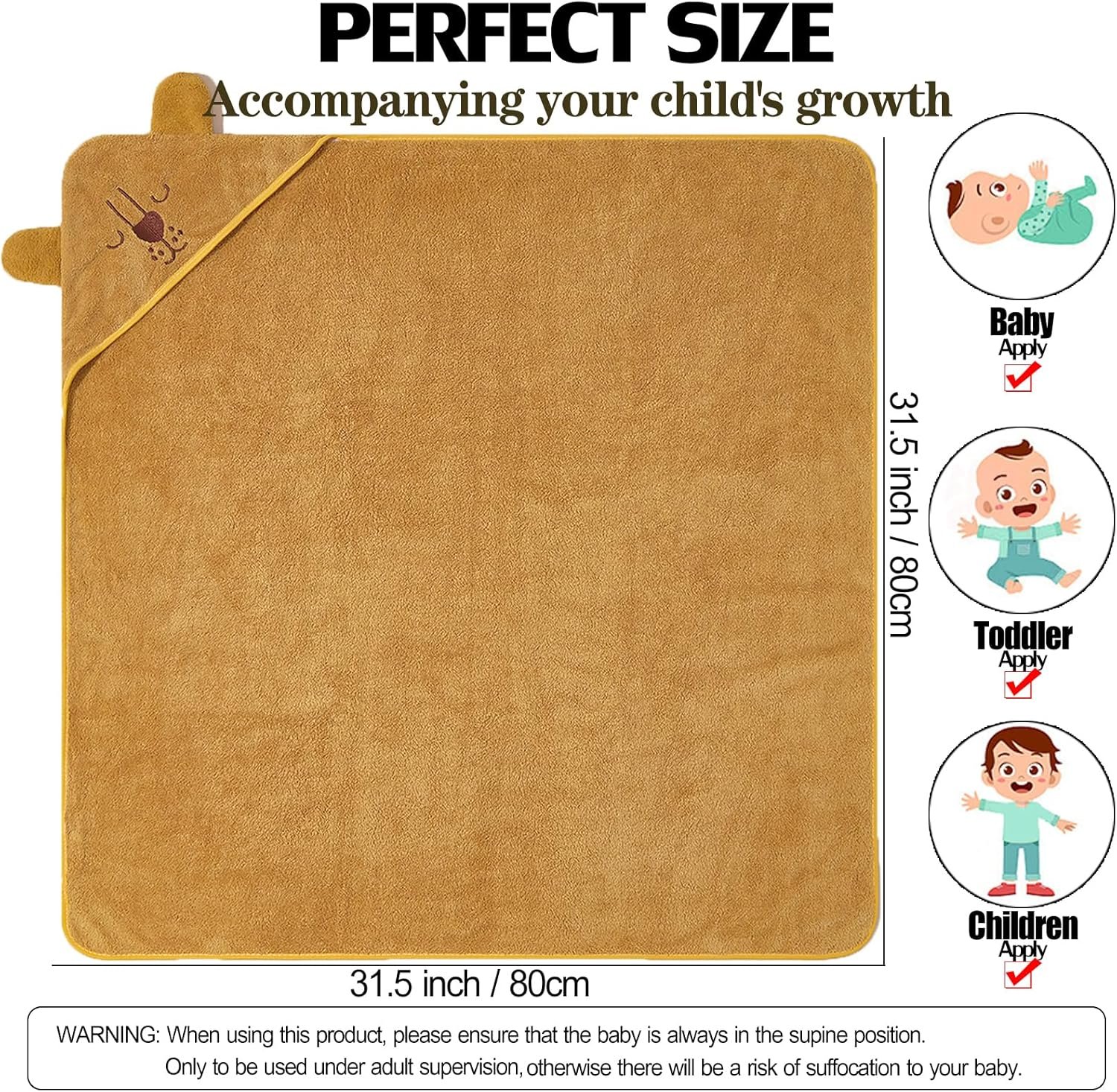 【MULTI-PURPOSE】Size 31.5 inch X 31.5 inch. Baby bath towels not only as baby bath towels but also wrap your little one in this soft baby hooded towel after bathing him in a tub, at the pool or beach.