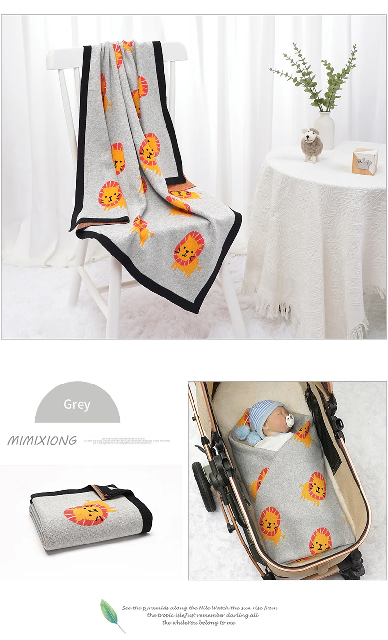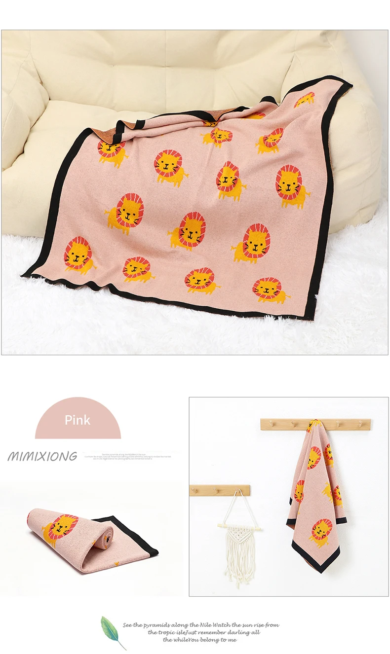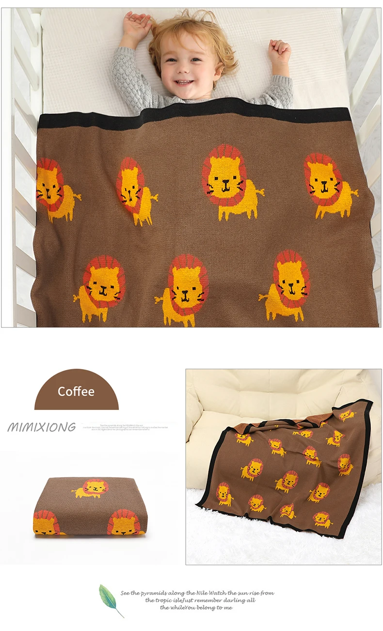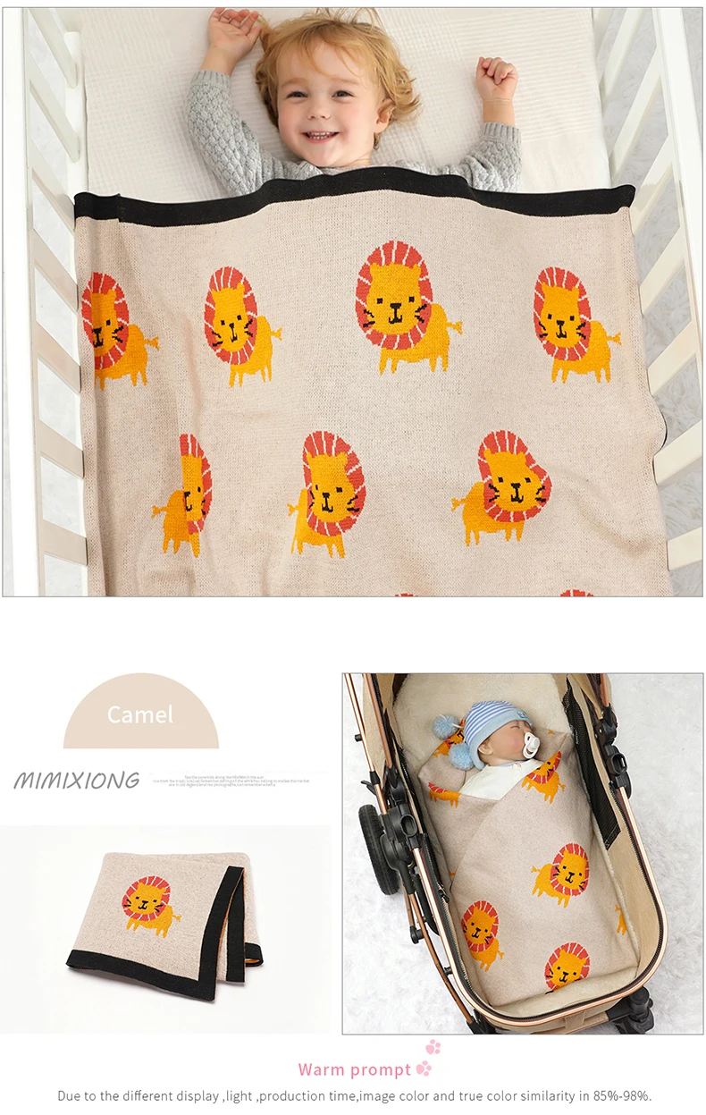 Baby Blanket 100*80CM Cotton Infant Kid Stroller Swaddling Super Soft Knitted Newborn Girl Boy Bed Plaid Quilt Cute Cartoon Lion