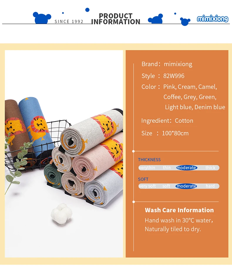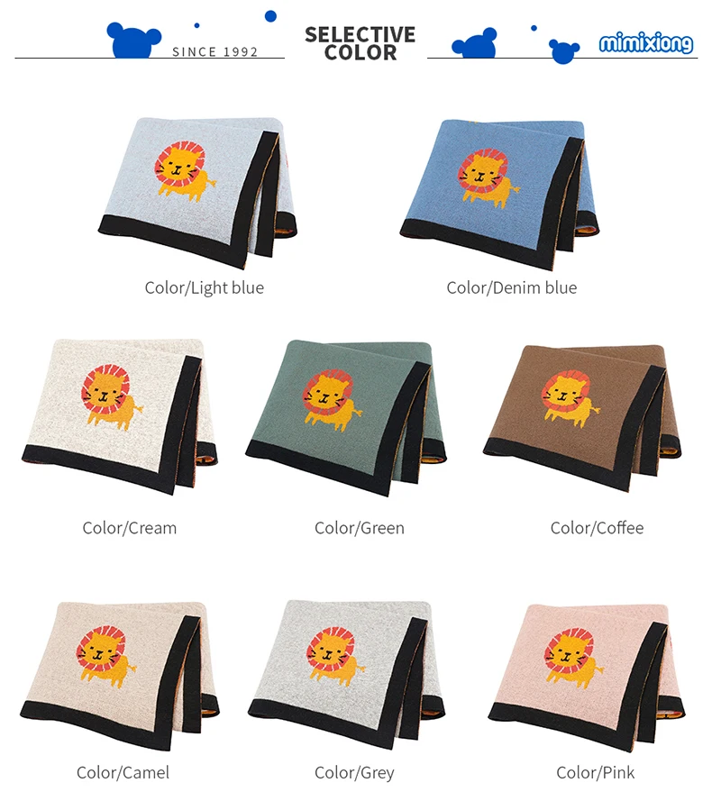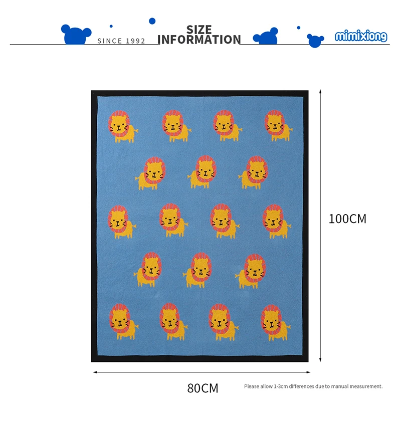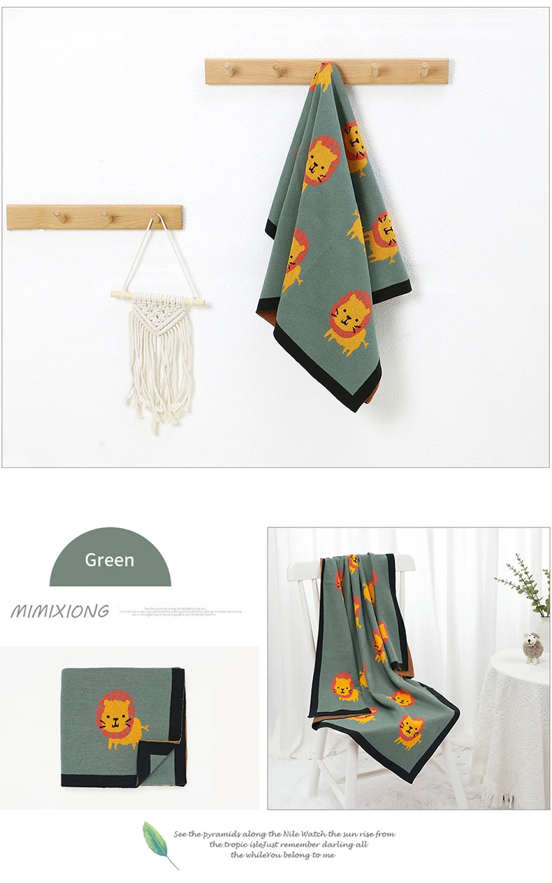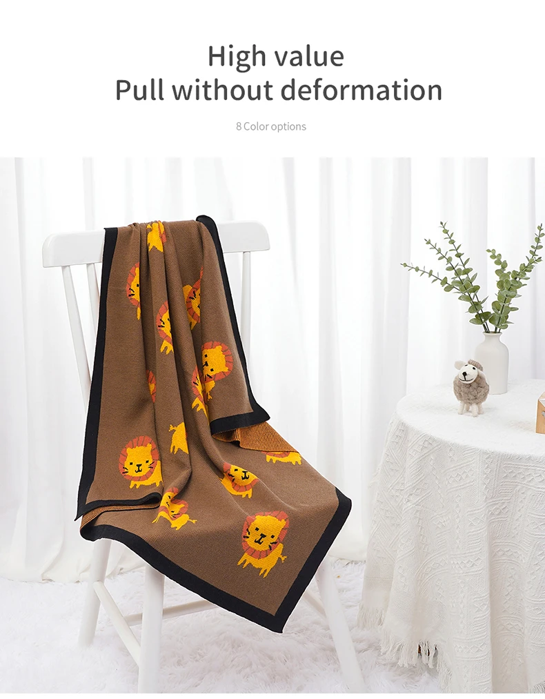 Baby Blanket 100*80CM Cotton Infant Kid Stroller Swaddling Super Soft Knitted Newborn Girl Boy Bed Plaid Quilt Cute Cartoon Lion