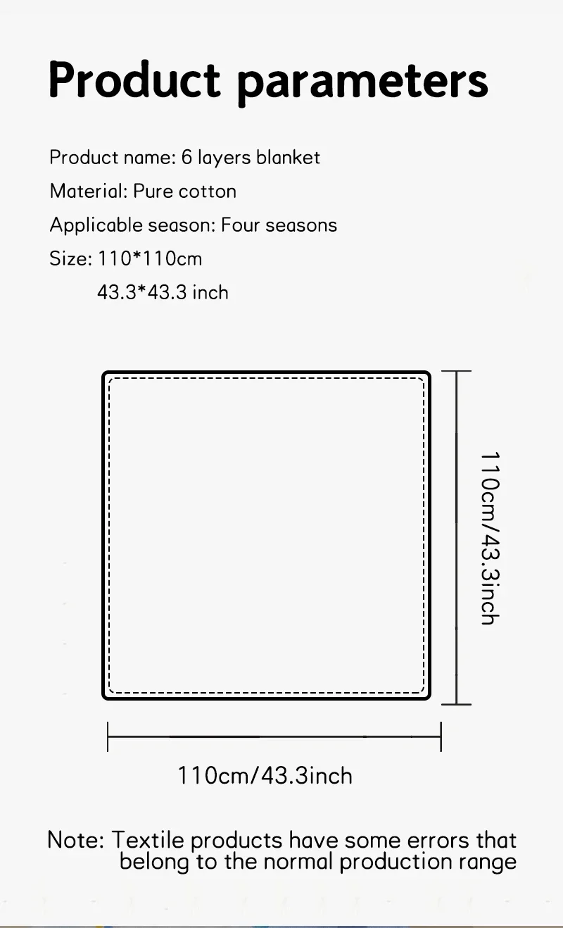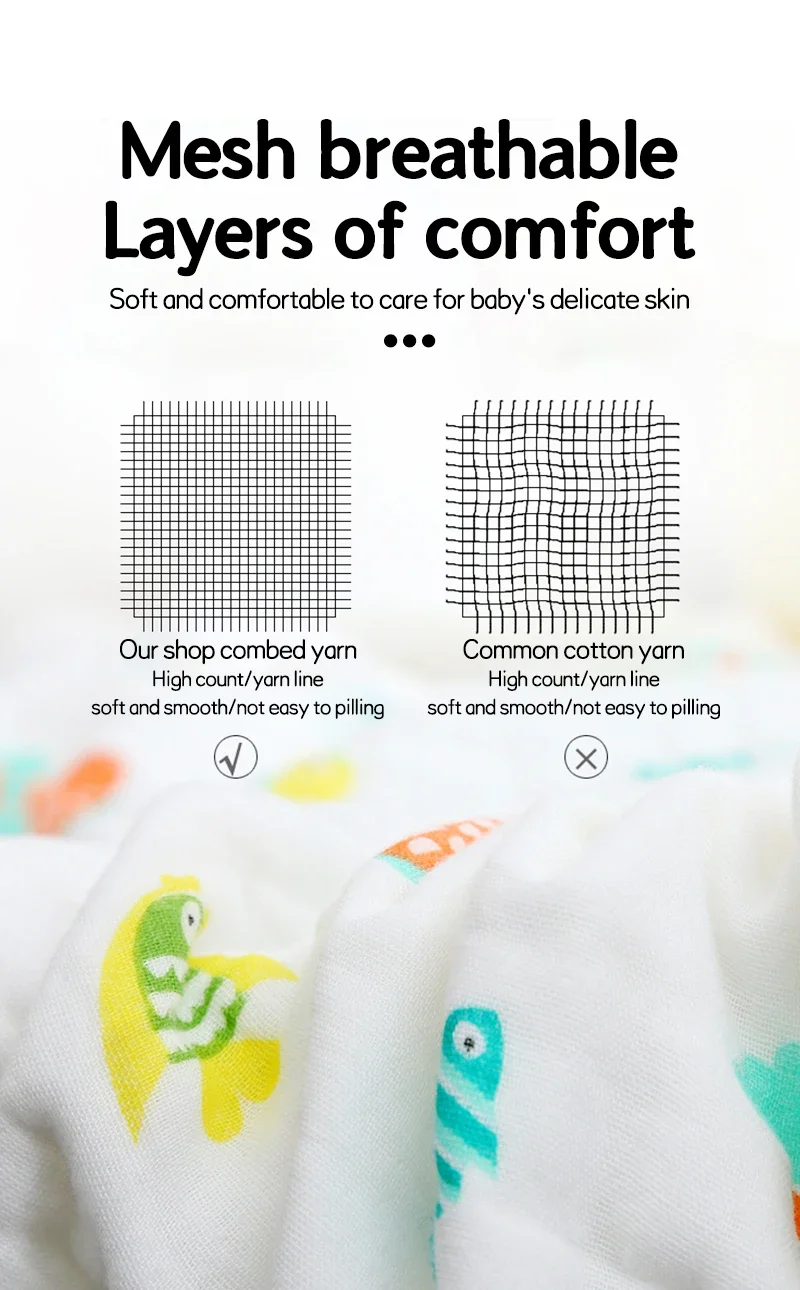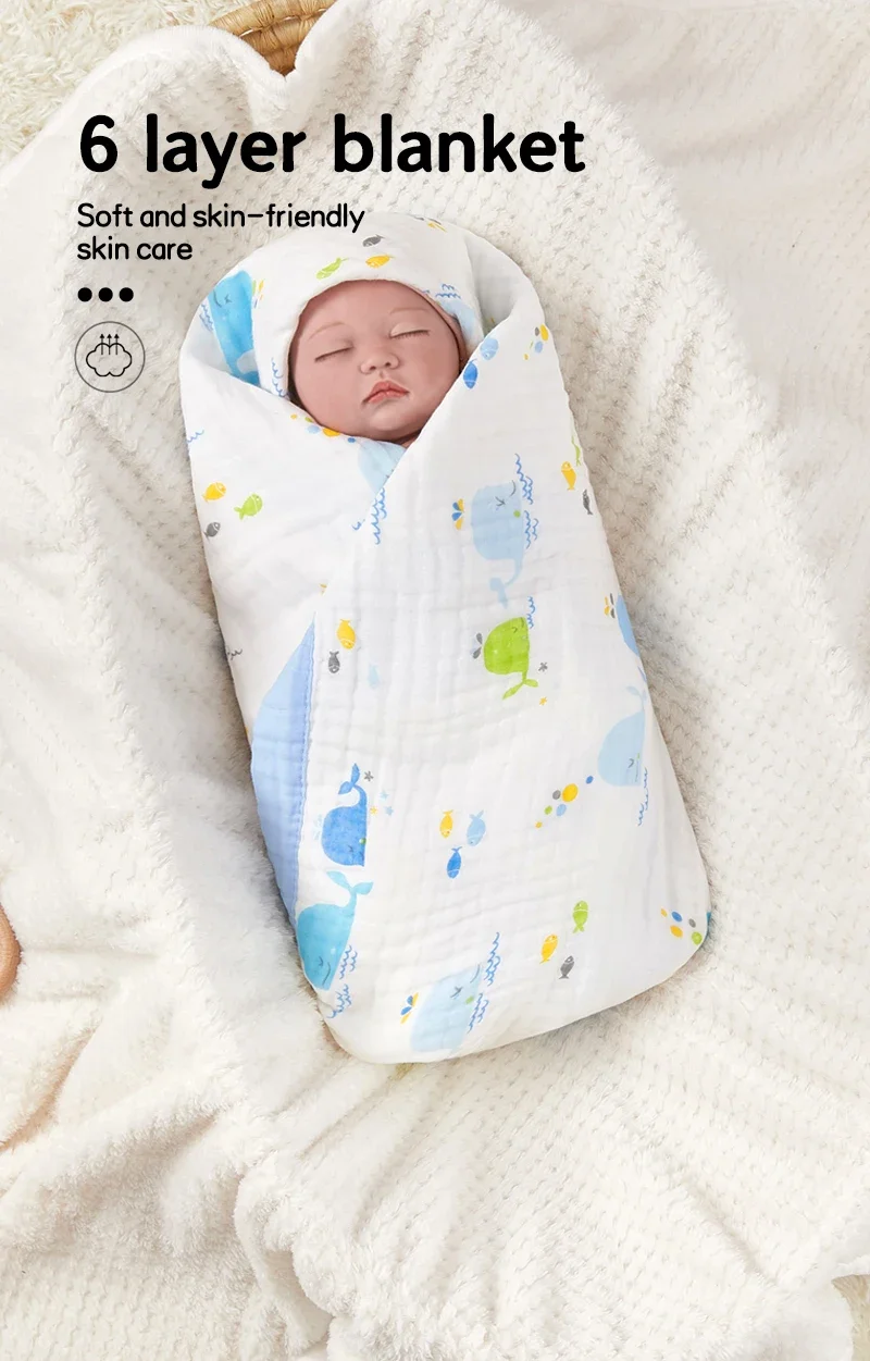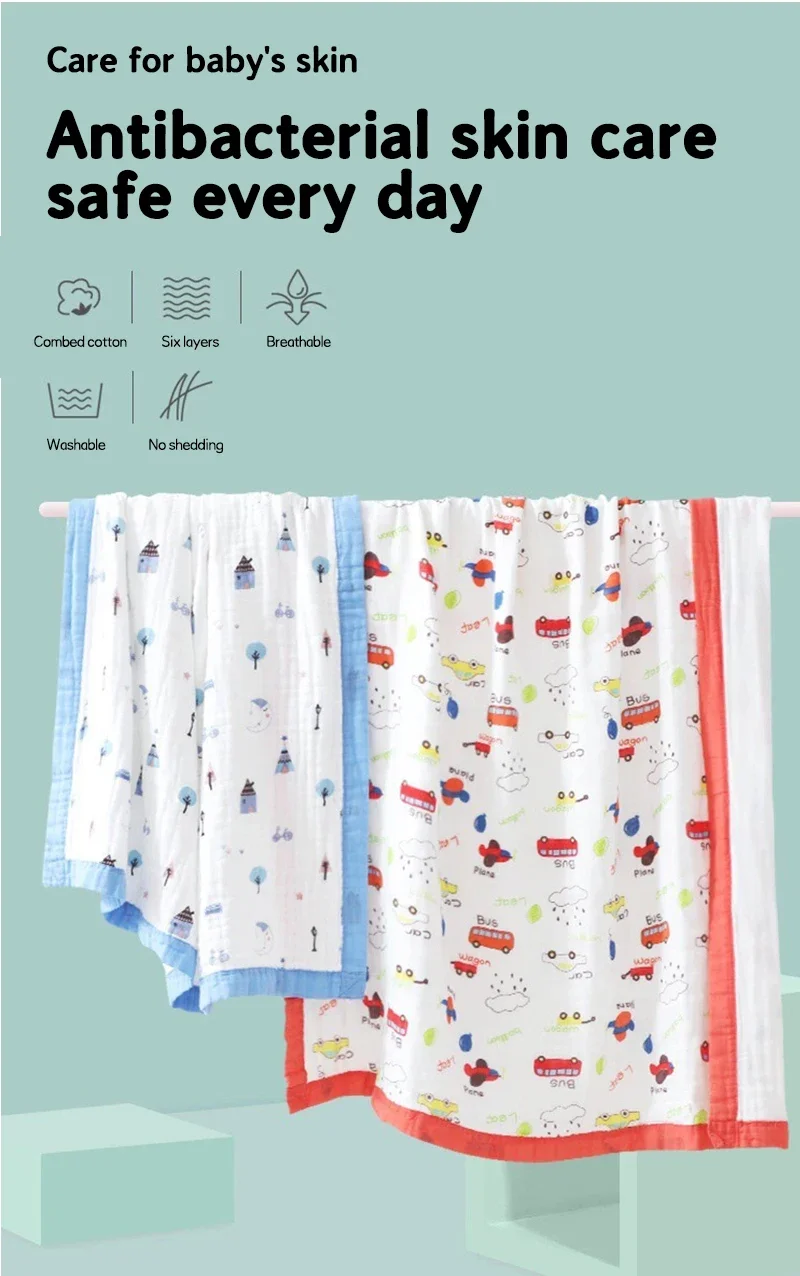 Baby blanket cotton 6 layers newborn swaddle blanket cartoon high-density breathable children’s blanket