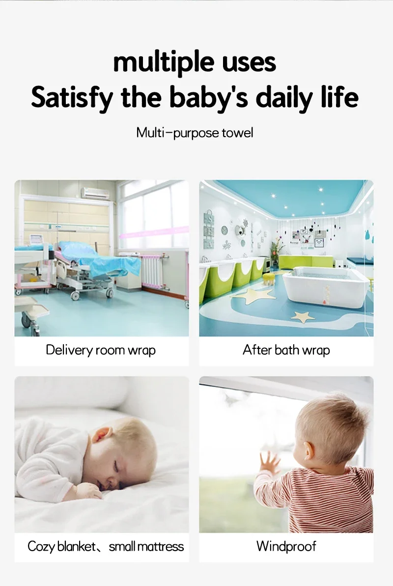 💖5.Usage scenarios: 1. Bath towel wrap 2. Stroller blanket 3. Baby quilt 4. Pad towel 5. Baby swaddle 6. Blanket (can be used in cold weather, keep warm)