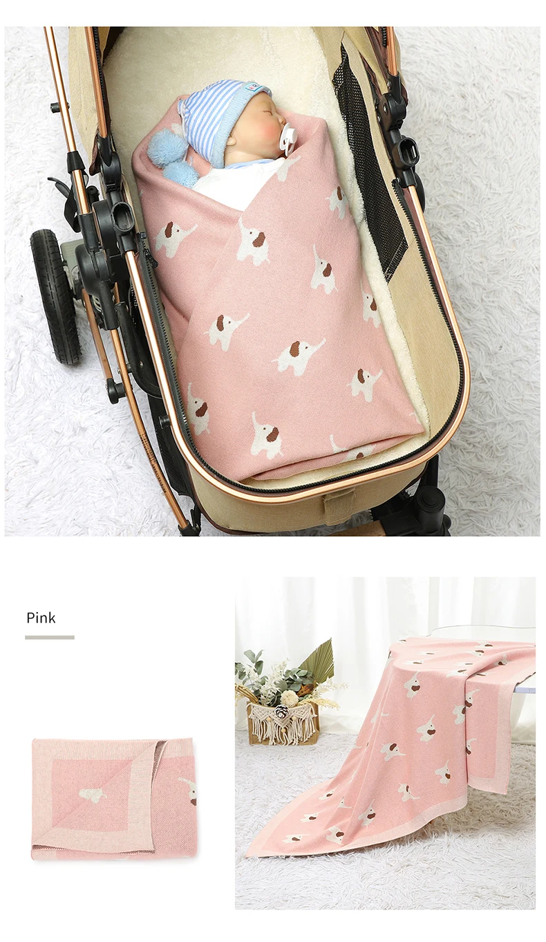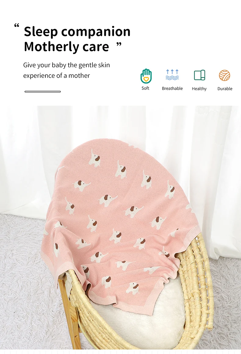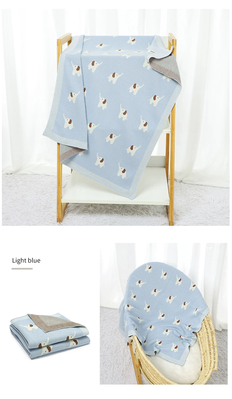 Baby Blanket Cotton Knitted Newborn Stroller Swaddle Super Soft Cover 90*70CM Plaid Infant Girl Boy Bedding Quilt Cute Elephants