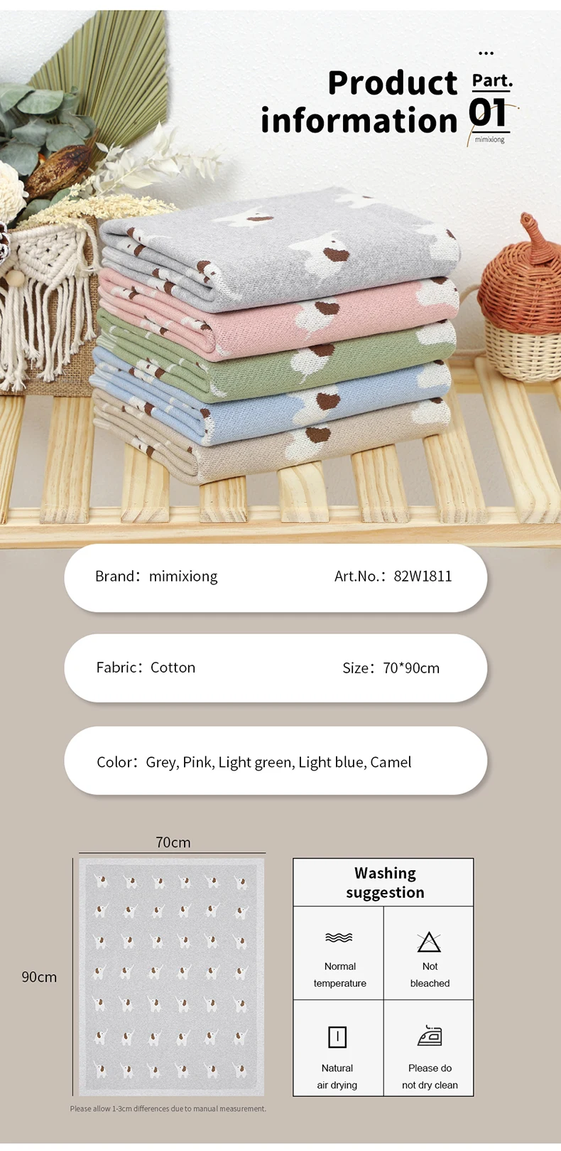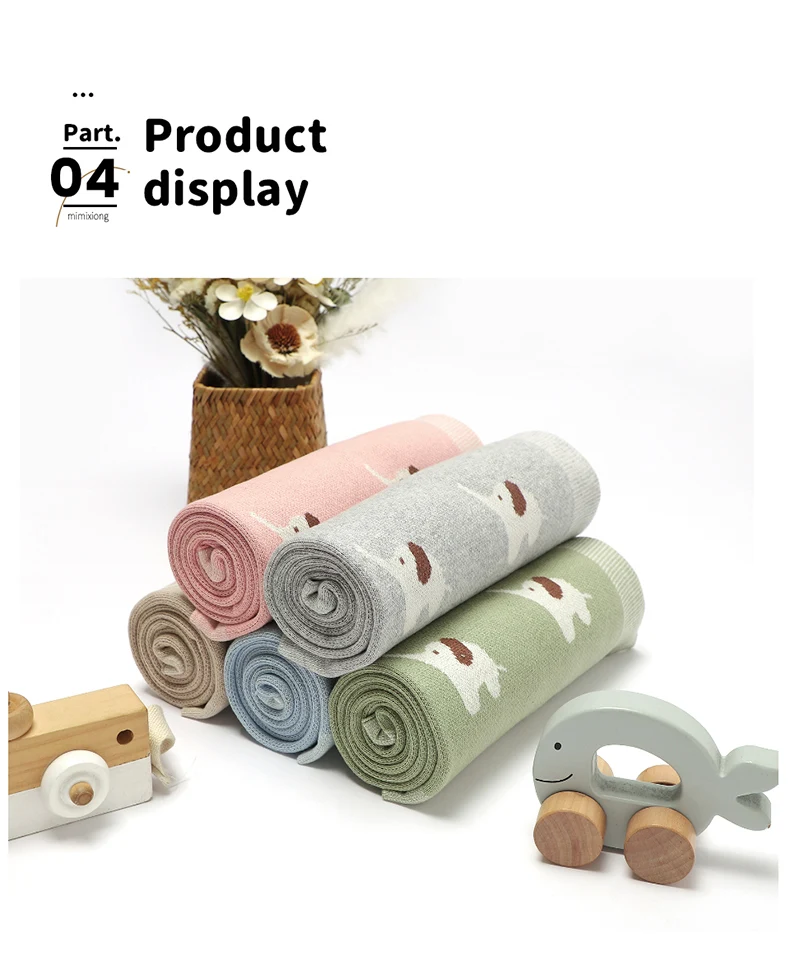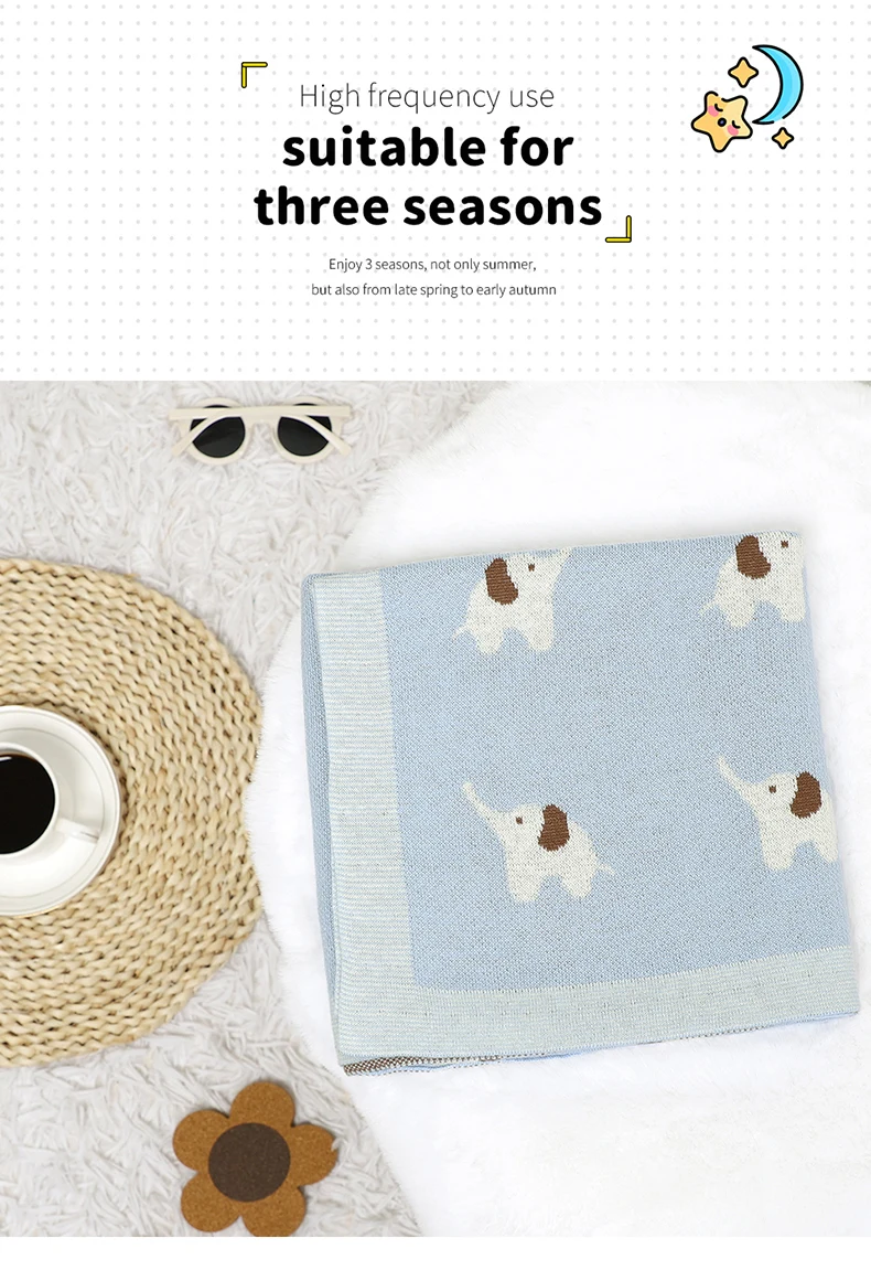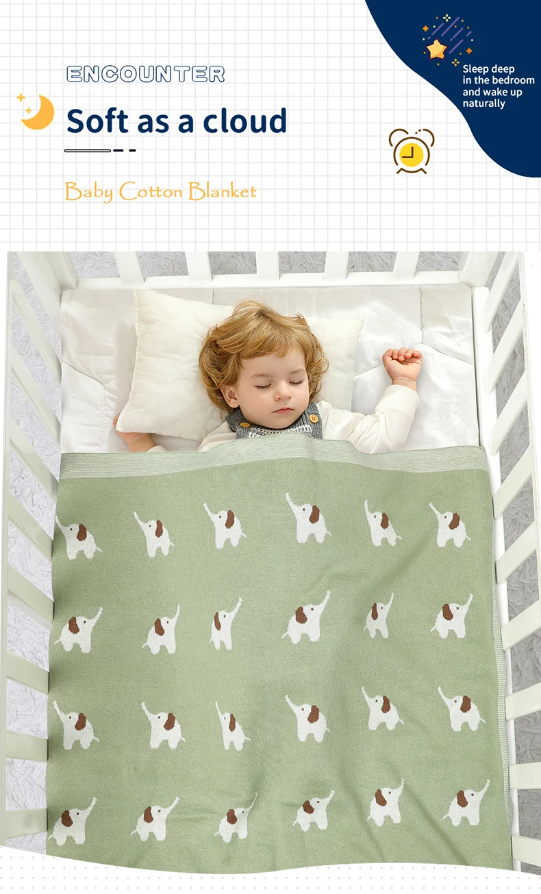 Baby Blanket Cotton Knitted Newborn Stroller Swaddle Super Soft Cover 90*70CM Plaid Infant Girl Boy Bedding Quilt Cute Elephants
