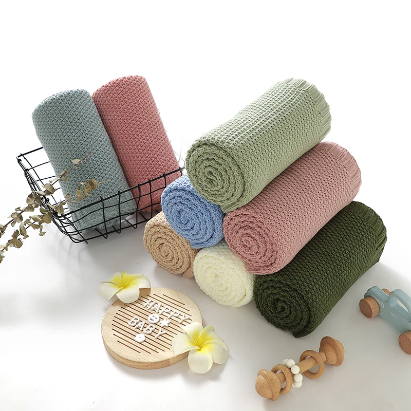 Baby Blankets Knit Infant Stroller Swaddle Wrap Sleepsack Super Soft Newborn Girl Boy Quilts Bedding 90*70CM Plaid Fashion Solid