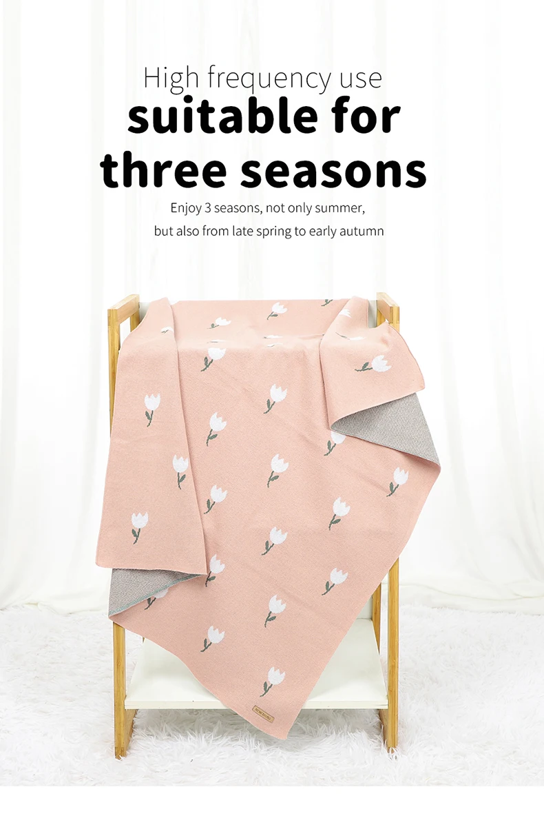 Baby Blankets Newborn Cotton Swaddle Wrap 100*80cm Floral Knitted Infant Boys Girls Crib Cellular Toddler Kids Receiving Quilts