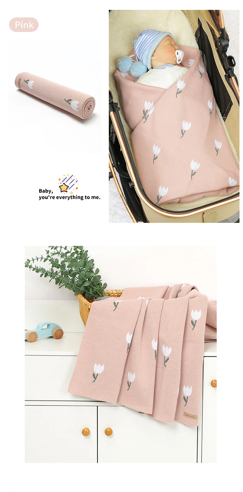 1 review for Baby Blankets Newborn Cotton Swaddle Wrap 100*80cm Floral Knitted Infant Boys Girls Crib Cellular Toddler Kids Receiving Quilts