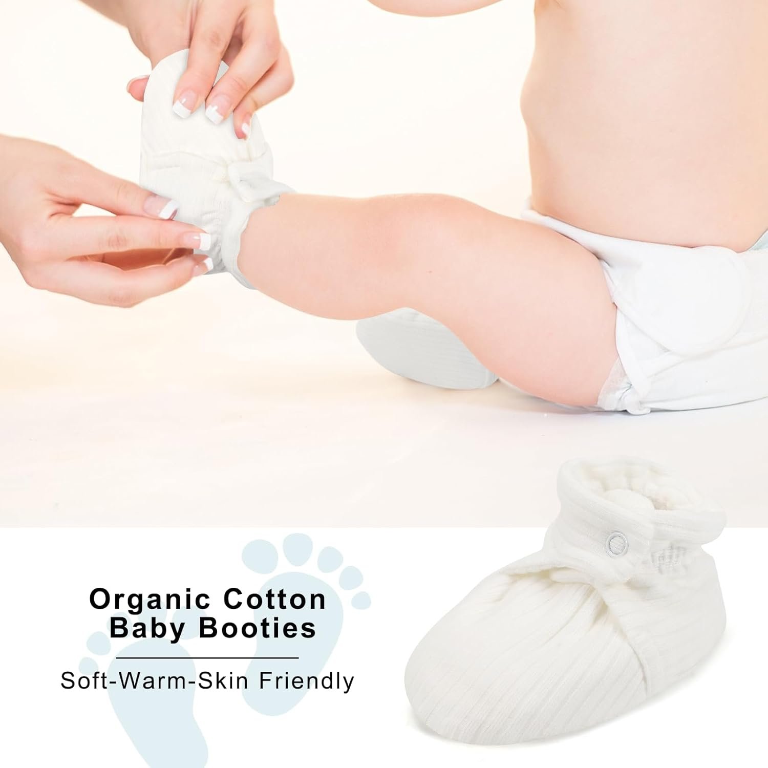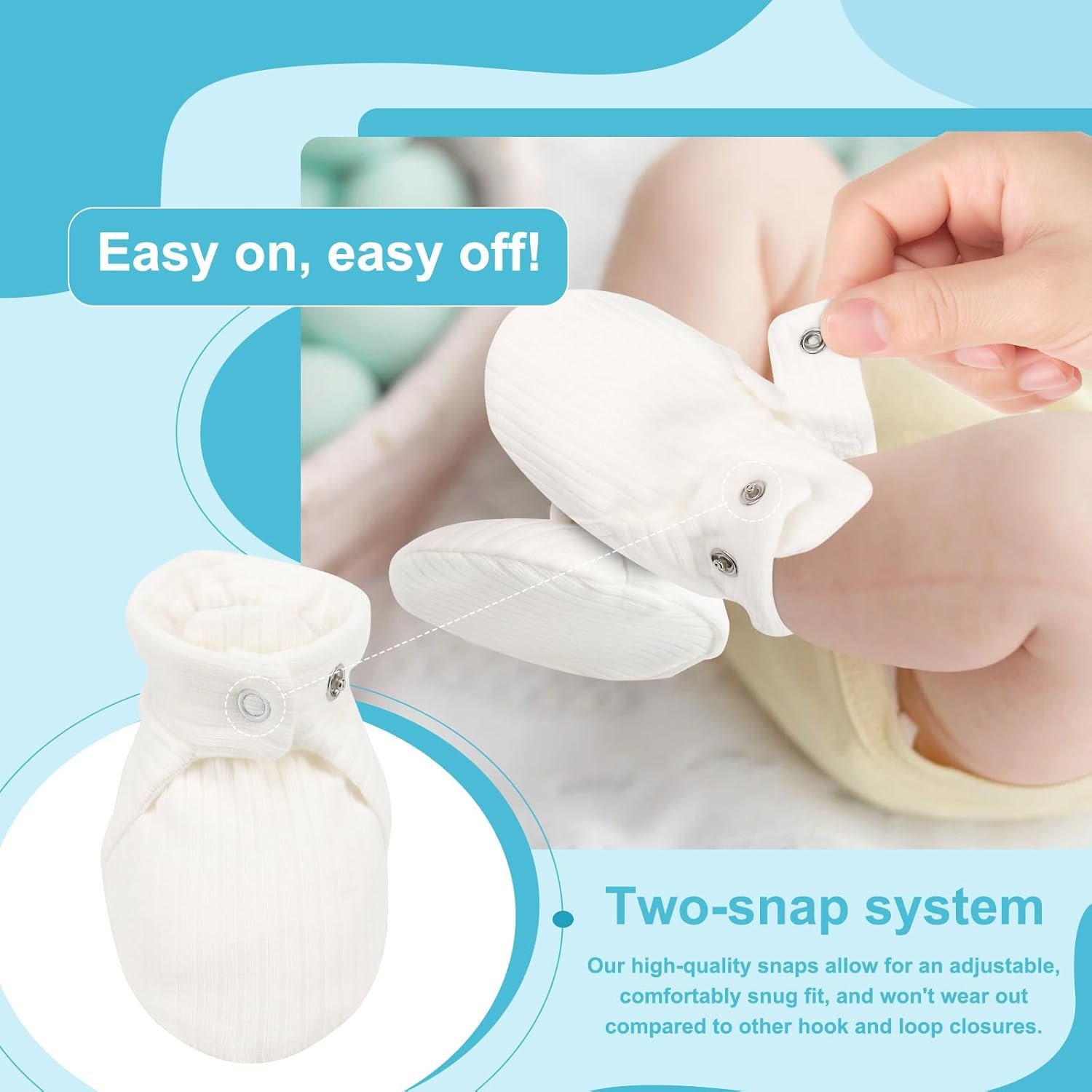 Organic cotton soft and gentle on delicate skinEasy to Put on and offUsing 2 snap to make it super easy to adjustable.Warm & Cozy, less cold feet.