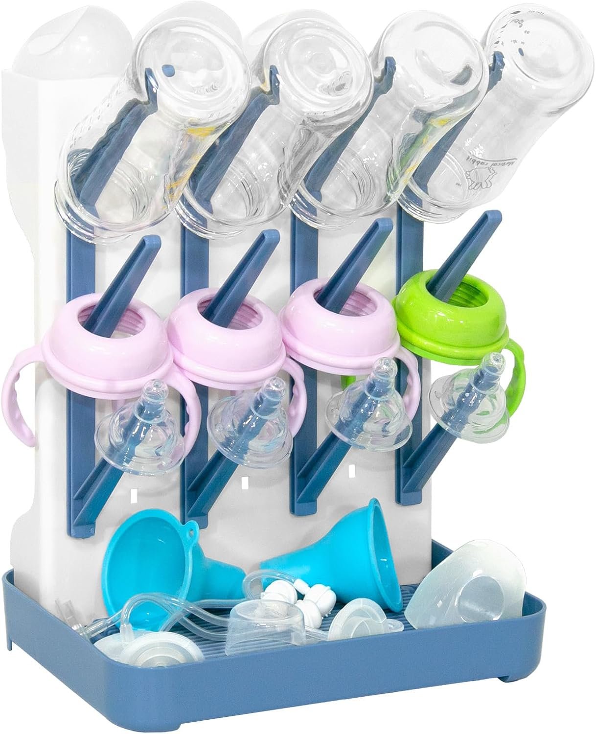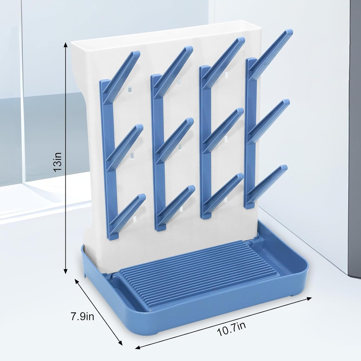 Baby Bottle Drying Rack, Large Bottle Dryer Rack Holder, Vertical Standing Countertop Drying Rack for Baby Bottles and Pump Part Cleaning, Holds Up to 12 Baby Bottles & Cup (Blue)
