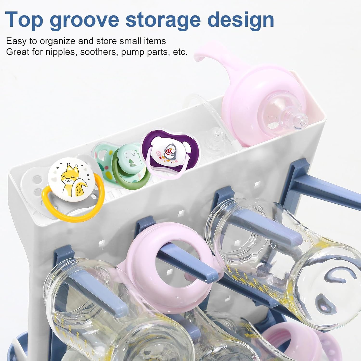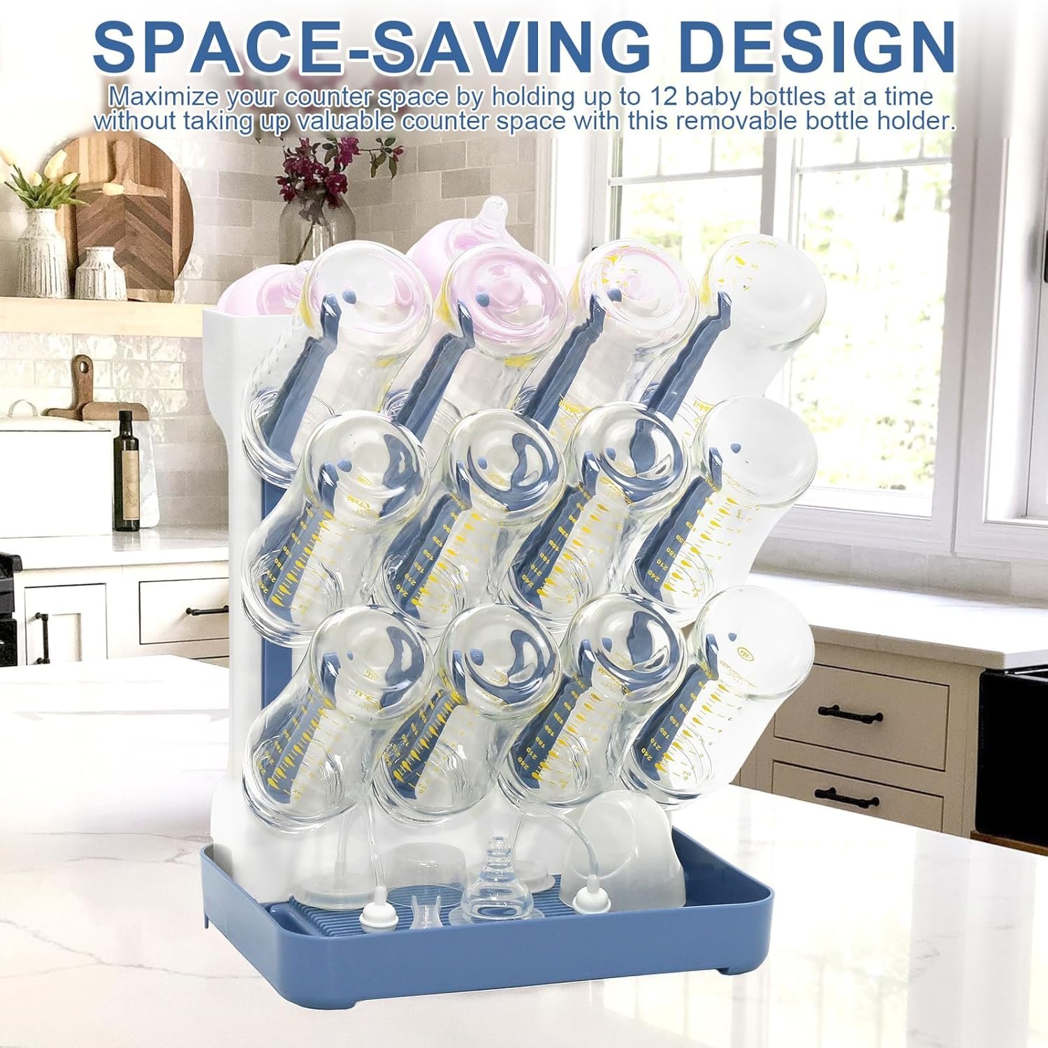 【Space-Saving Vertical Design, Holds 12 Bottles】: Maximizes counter space at just 7.9″D x 13″W yet holds 12bottles + accessories vertically. Features dedicated slots for nipples, brushes and pump parts to prevent clutter and be ready for the next feeding