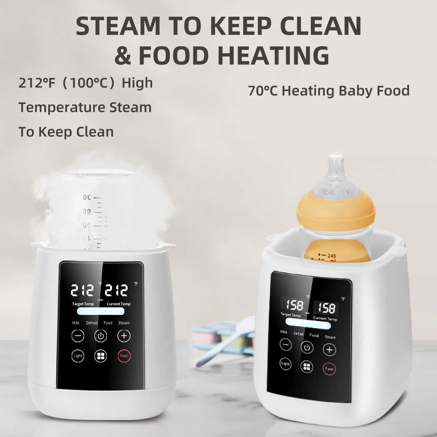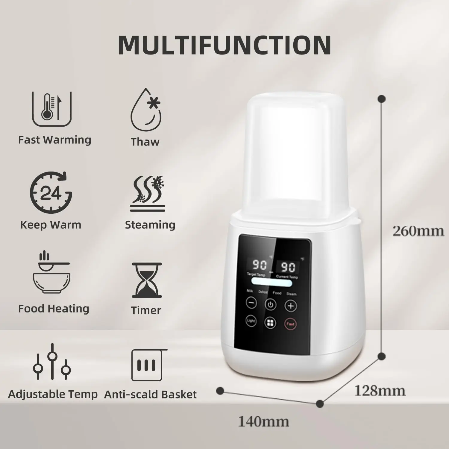 Easy to install – Quick warm-up / defrost / keep warm / steam cooking / heating food / timer / adjustable temperature / anti-scale basket. Save the money on other useless bulky devices. This all-in-one baby bottle warmer meets all your needs. It is the best gift for the birth of a child for growing families.