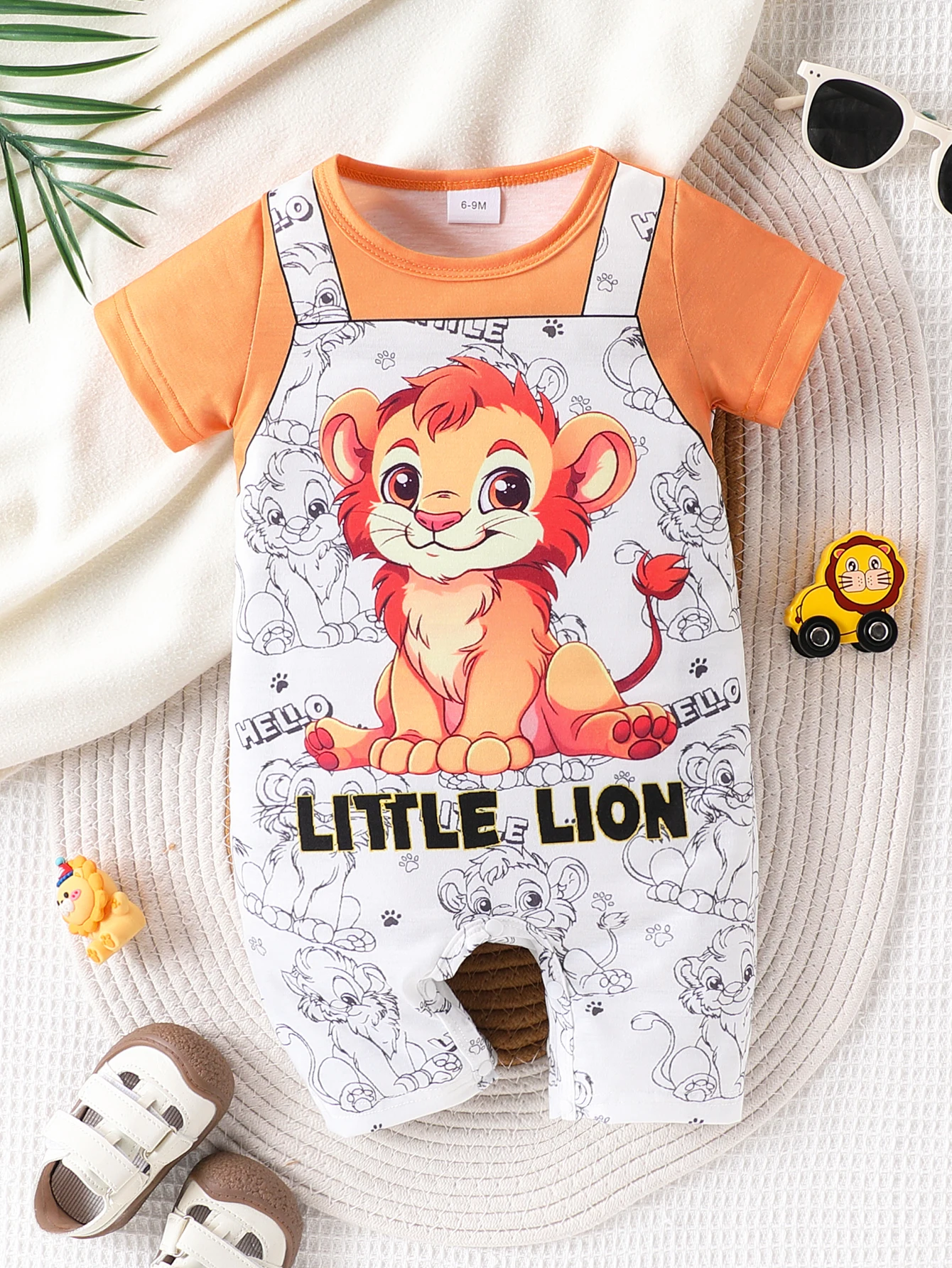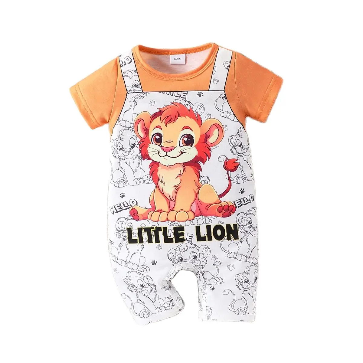 Baby boy casual cute cartoon animal full print splicing round neck short sleeved shorts jumpsuit summer