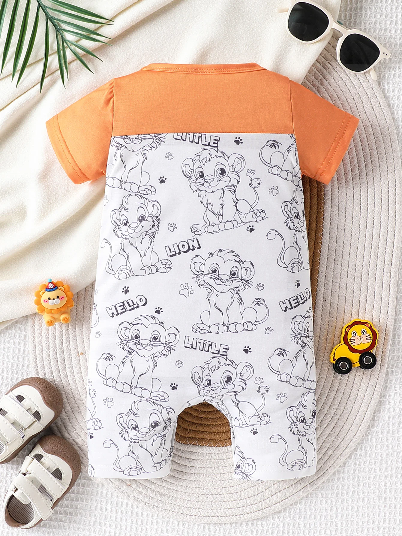Baby boy casual cute cartoon animal full print splicing round neck short sleeved shorts jumpsuit summer