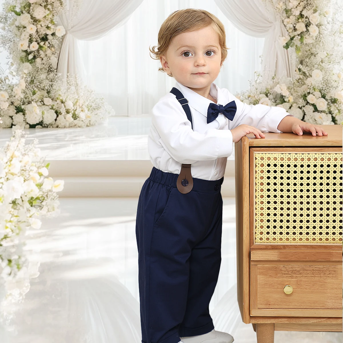 Baby Boy Christening Outfit Infant Baptism Suit Toddler Wedding Church Easter Birthday Gift Romper Shirt + Pants Clothes 2PCS