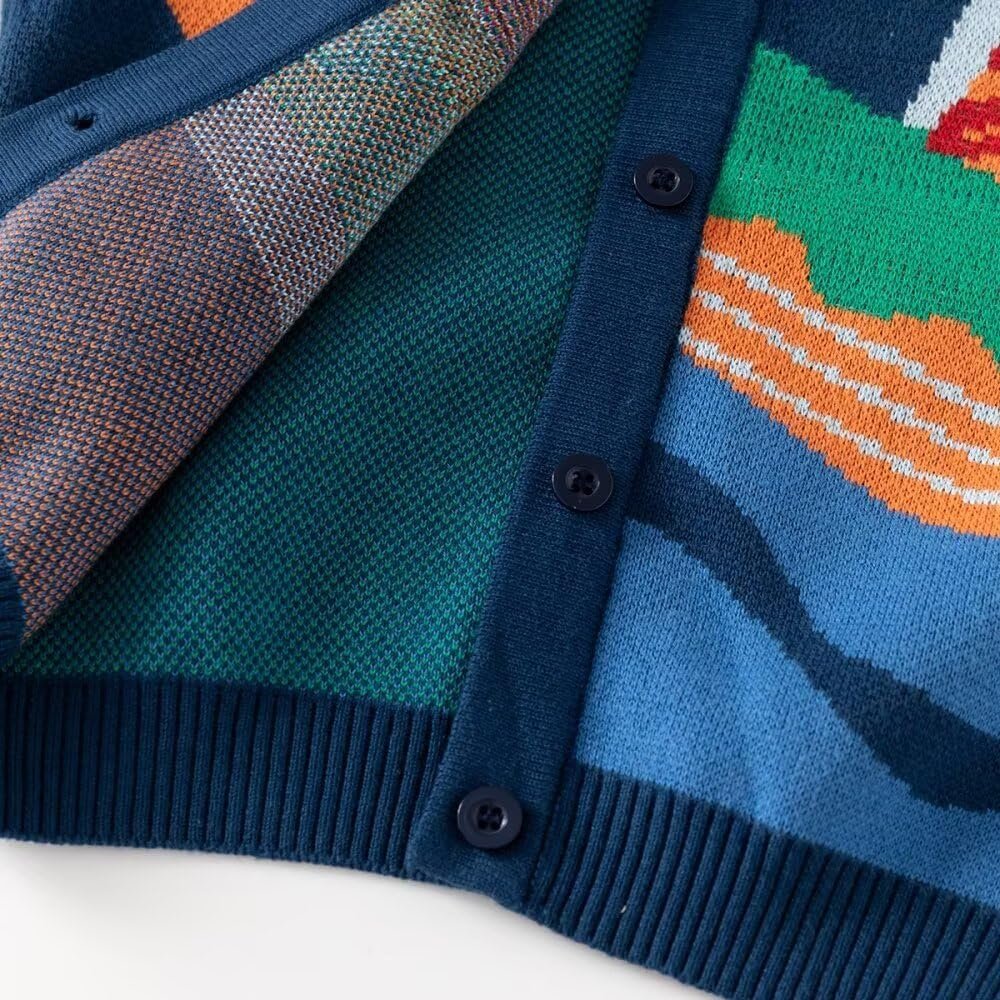 This is a knitted cardigan sweater suitable for girls, which can be worn as a jacket in autumn and winter, with button closure