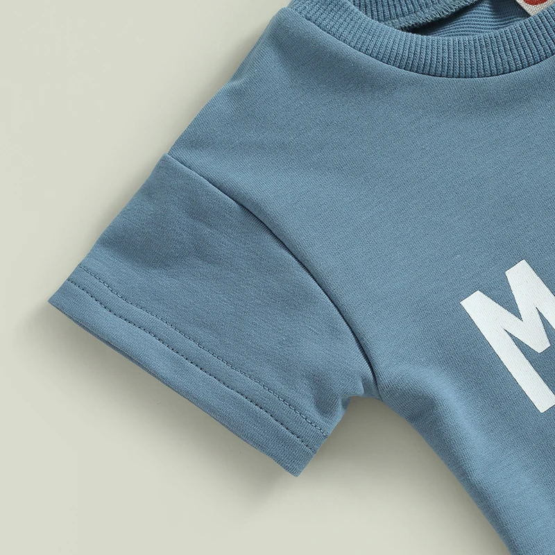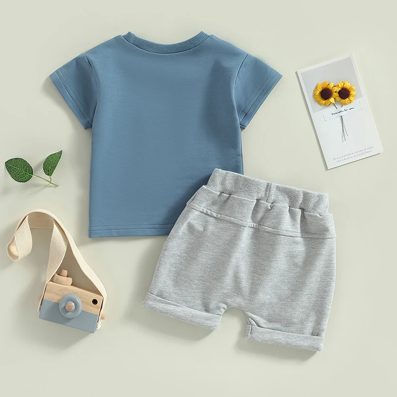 Infant Boy Summer Clothes Suits Letter Print Short Sleeve Crew Neck T-Shirts and Elastic Waist Shorts 2Pcs Set