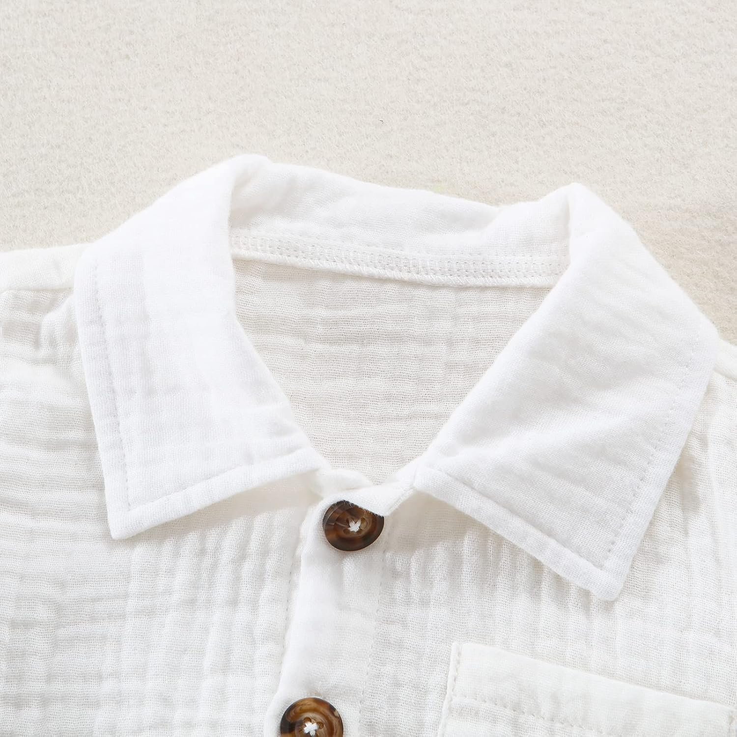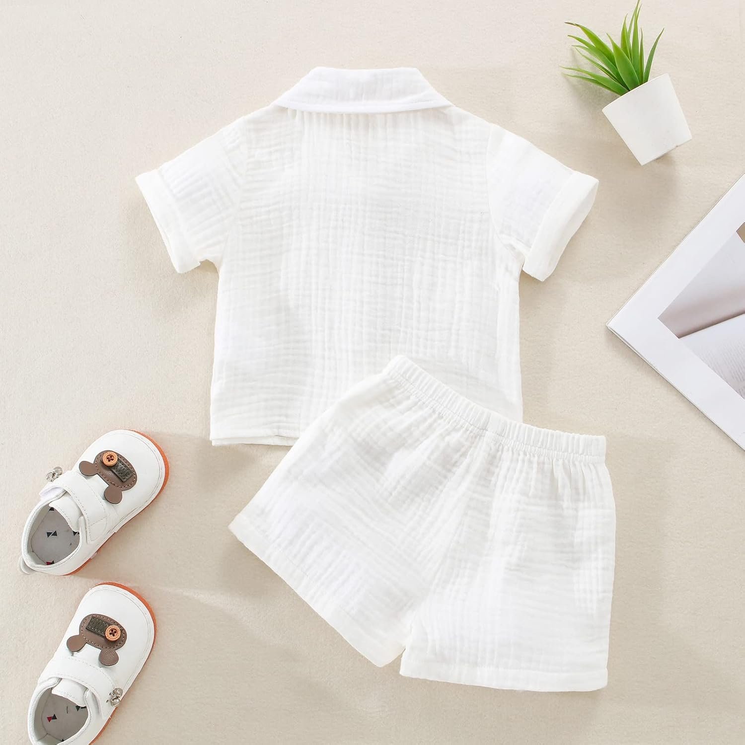 Baby Boys Clothes Set Toddler Infant Boys Button-down Shirt Tops + Cotton Gauze Shorts Summer Outfit 2PCS with Pockets