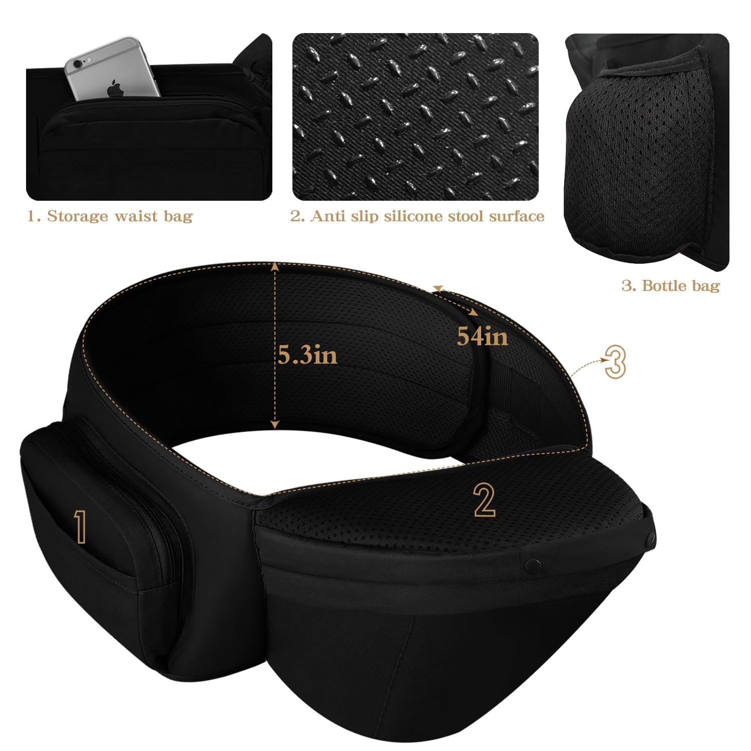 Baby Carrier Newborn to Toddler,Baby Carrier with Hip Seat,Ergonomic, Safety-Certified Baby Hip Carrier with Foldable Neck Support Pod,12 in 1 Baby Holder Carrier with Adjustable Waist Belt