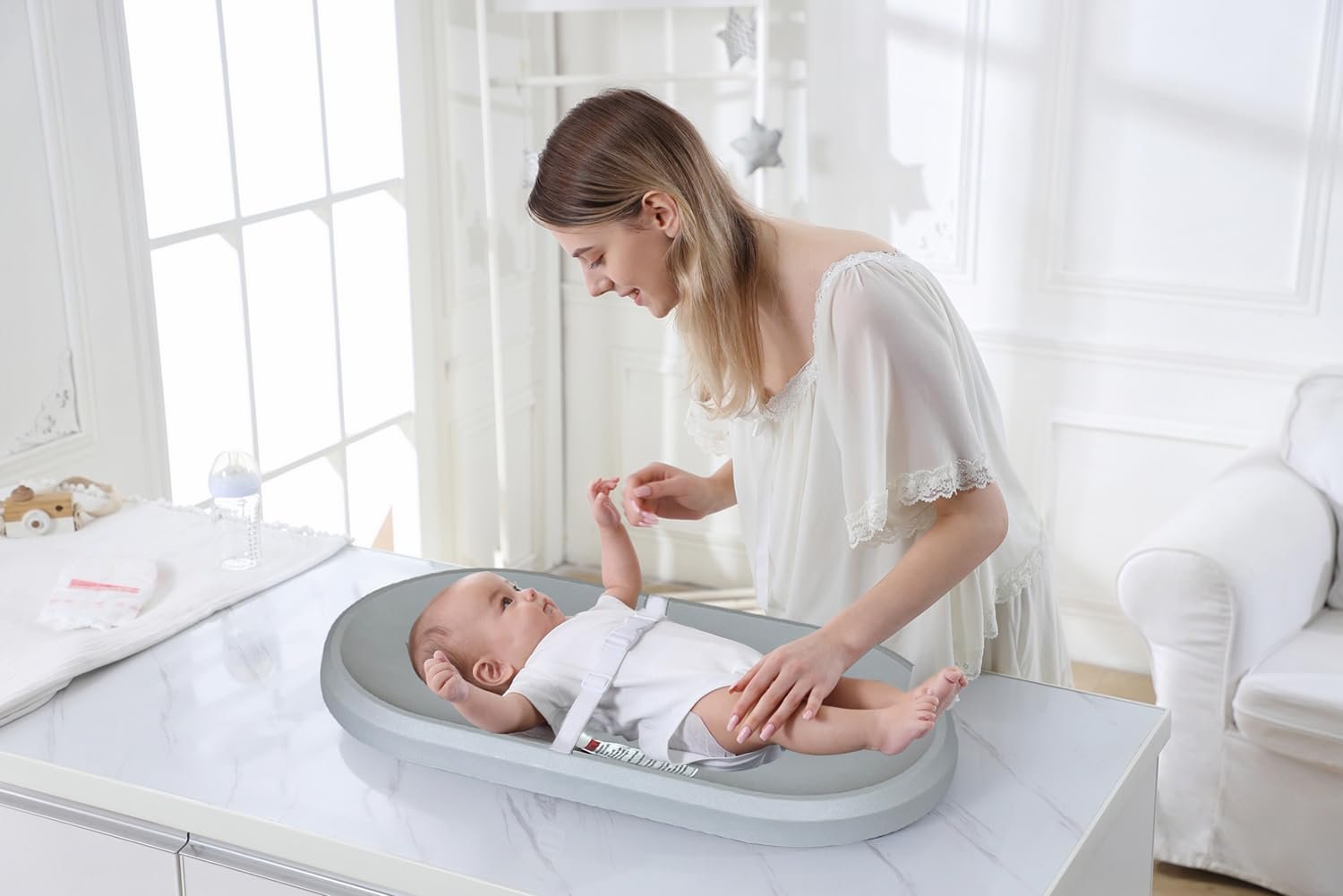 Protective & Soft Touch: Secure contoured design EPR foam pad with safety straps, cozy surface for stress-free diaper changes.