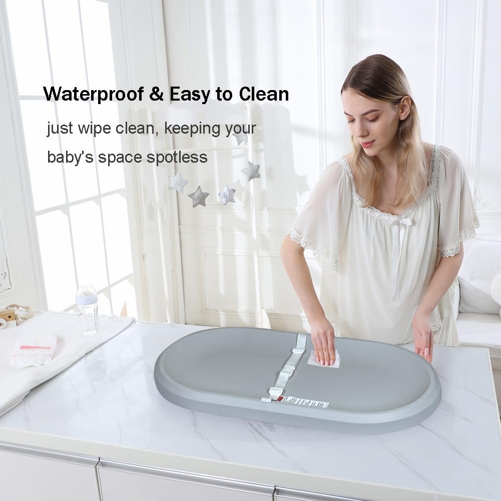 Portable & Easy to Clean: Easy to wipe off stains with a damp cloth, No need an additional cover, Fits to most of changing tables.